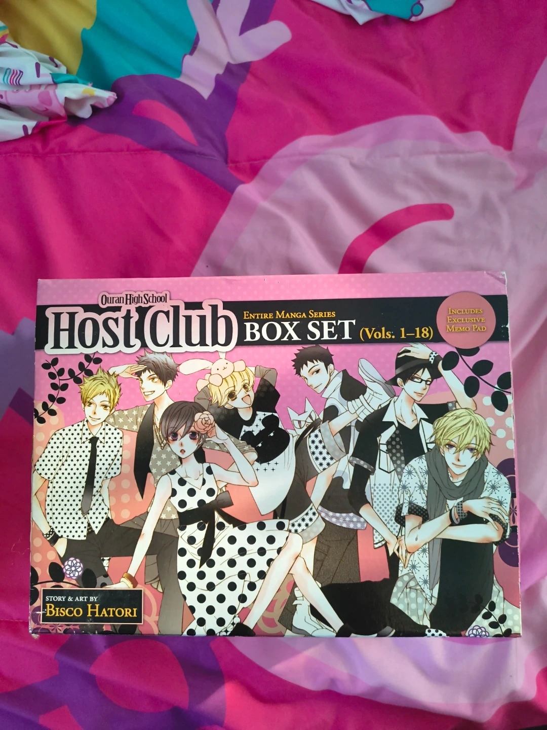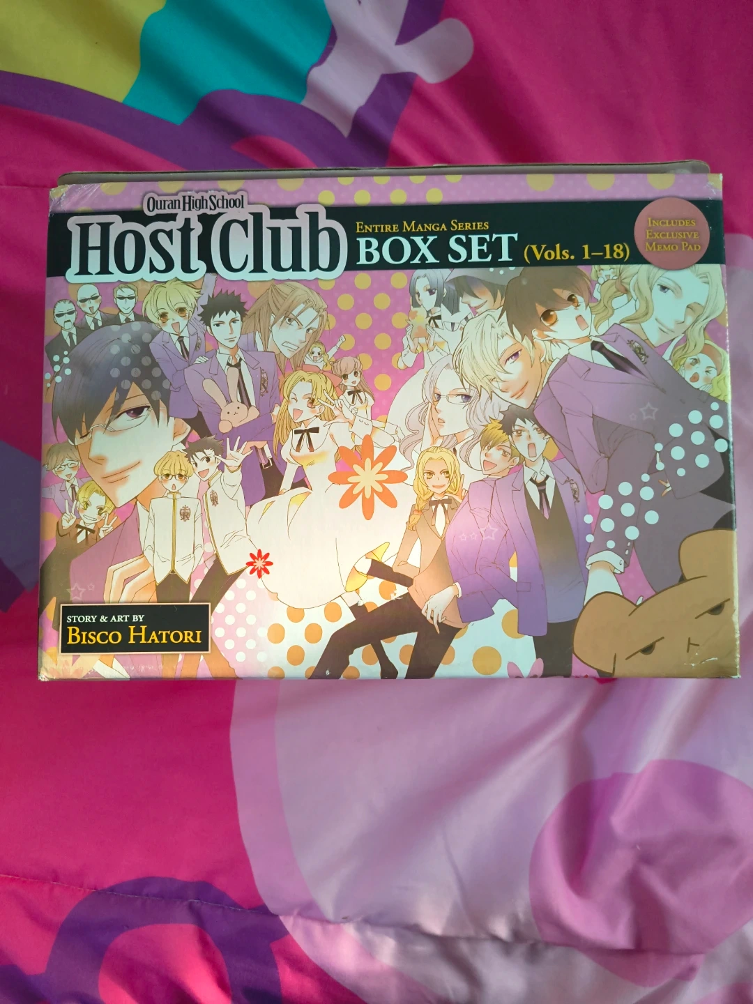 This is the complete Ouran High School Host Club manga series, Volumes 1 through 18. It does not include the exclusive memo pad. It's a great collection for any manga fan.