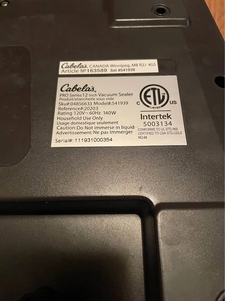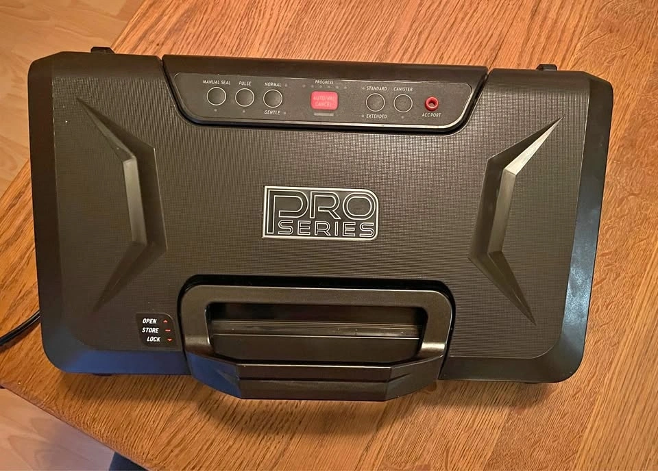 Preserve your meat easily and effectively. This 12" Pro Series Vacuum Sealer seals up to 100 bags per hour with virtually no wait between bags. 24 inHg of pressure keeps your food fresher for longer and helps prevent freezer burn. The compact 12" sealing bar delivers an airtight seal. Crush-resistant, replaceable foam seal gaskets create an airtight vacuum chamber for many years to come. Choose from Manual Seal, Pulse, Gentle, Extended, Canister, and Auto/Vac Cancel modes. Features waterproof, easy-touch control-panel buttons. The clear acrylic vacuum chamber with LED lighting allows you to check on progression. It has a three-position handle (lock, store, and open) for worry-free sealing. Bag-positioning guides keep bags in constant alignment. Includes built-in bag storage, a bag cutter, and cord wrap for convenience. Nonslip rubber feet. Comes with four Liquid Blockers to prevent liquids from entering the sealing area, as well as a bag roll. Dimensions: 4.75"H x 17.25"W x 9.75"D. Weight: 6 lb. Pick up in Port Moody.
