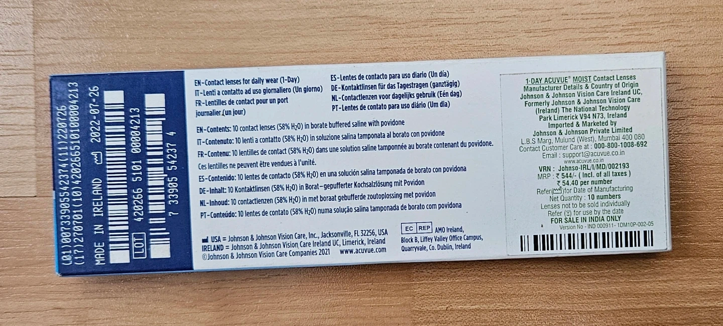 Brand new, unopened daily disposable contact lenses with UV blocking.