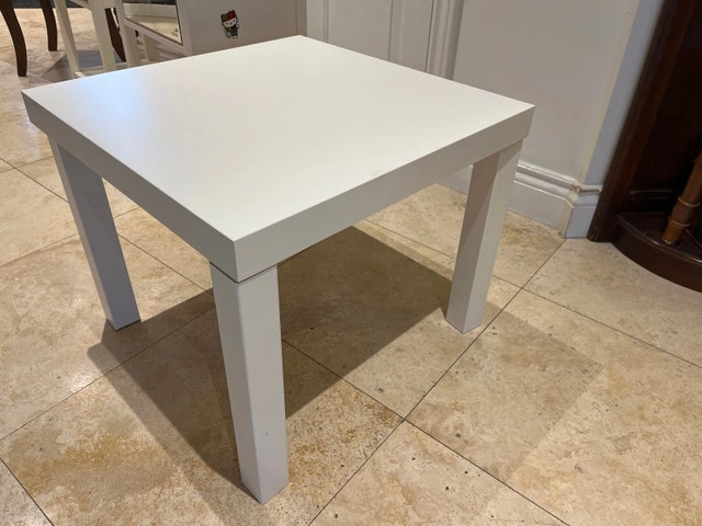 This square IKEA Lack side table features a clean, white finish, perfect for any modern living space. It's been well-maintained and is in good condition. Its compact size makes it ideal for small apartments or as an accent piece. Dimensions: 55x55 cm, Height: 45 cm, Colour: White, Material: Wood/wood fibre board. Cash accepted.
