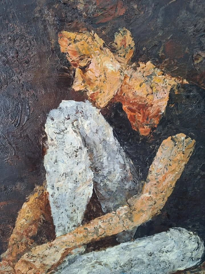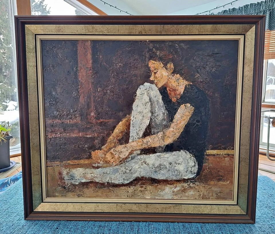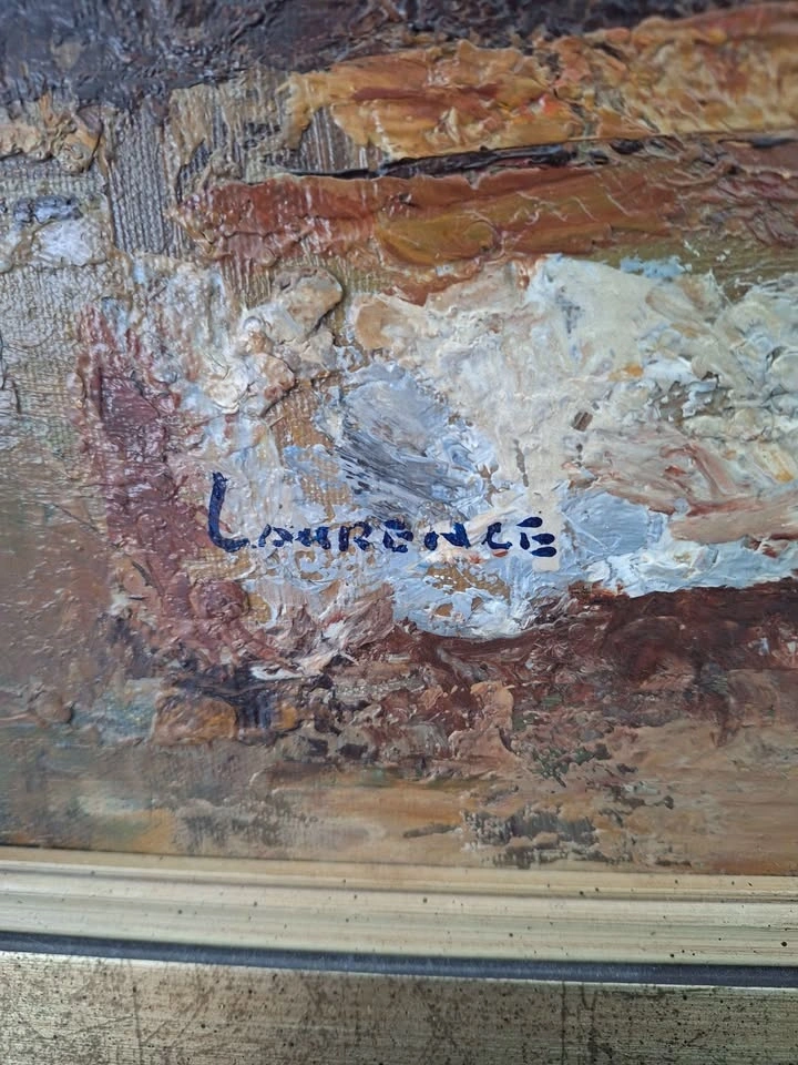 Original oil painting on canvas in a heavy wooden frame by "Laurence". The frame has minor scuffs and measures approximately 28.5" x 24.5" x 2.25" deep. Pick up is in the Bloomington and 9th line area.