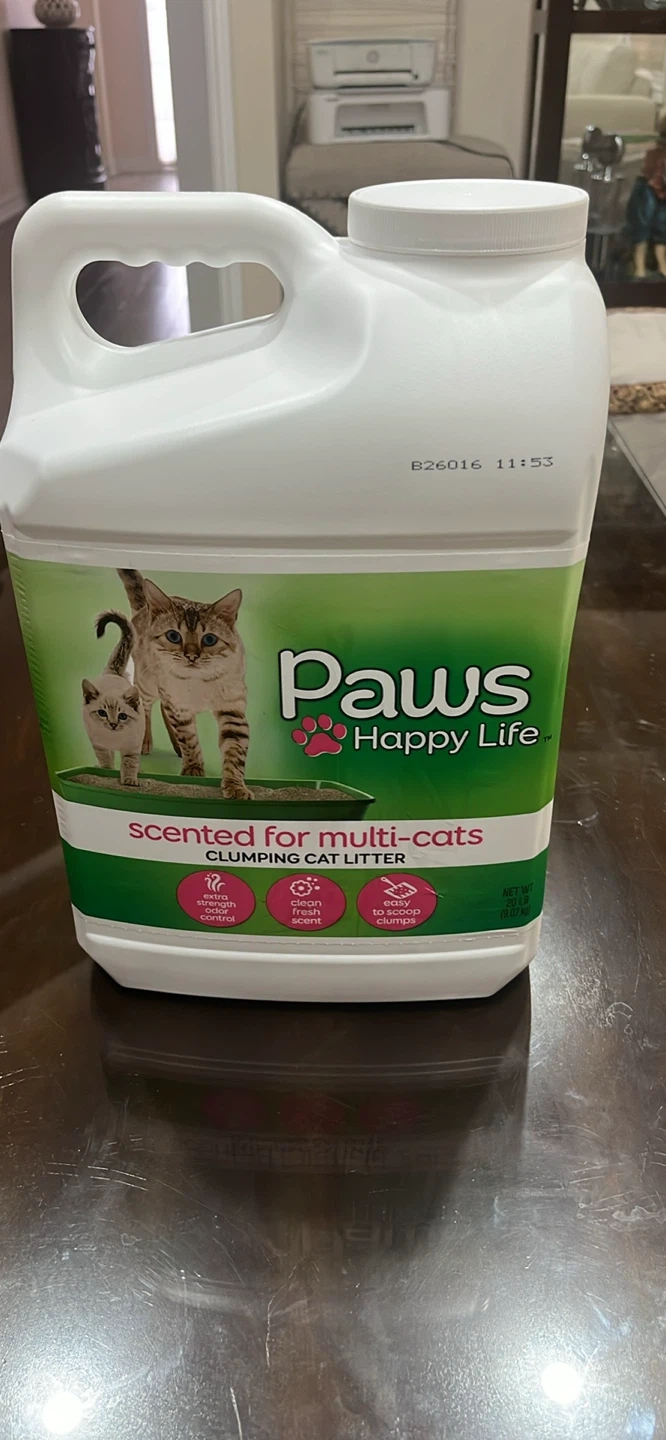 This Paws Happy Life cat litter is scented for multi-cats and offers extra strength odor control. It provides a clean, fresh scent and is easy to scoop. Made with clay and fragrance for optimal performance. Net weight is 20 lbs (9.07 kg). 1 for -$6 and 2 for $10. Selling 10 boxes