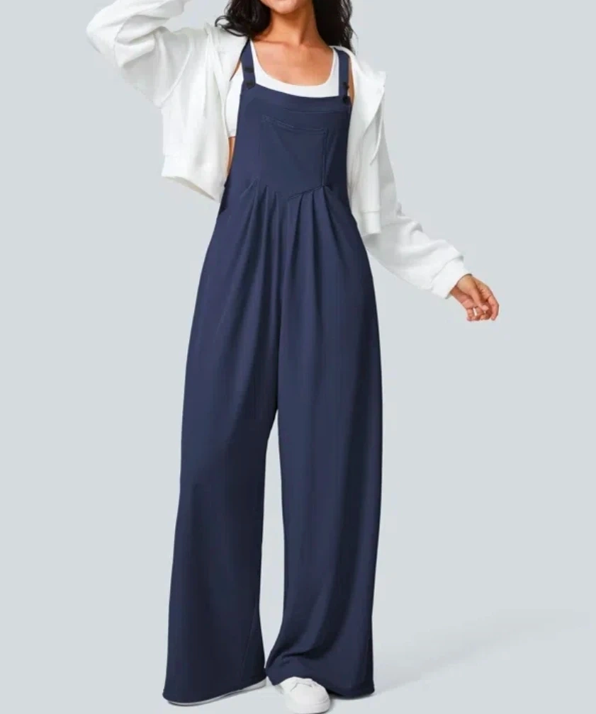 Halara Pocket Waffle Casual Overalls – Dark Blue (XL)