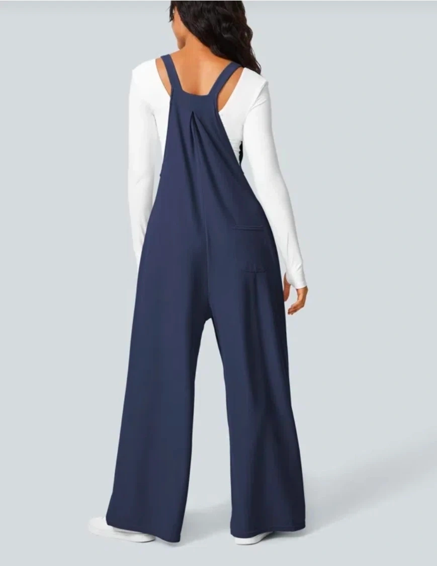 Halara Pocket Waffle Casual Overalls – Dark Blue (XL)