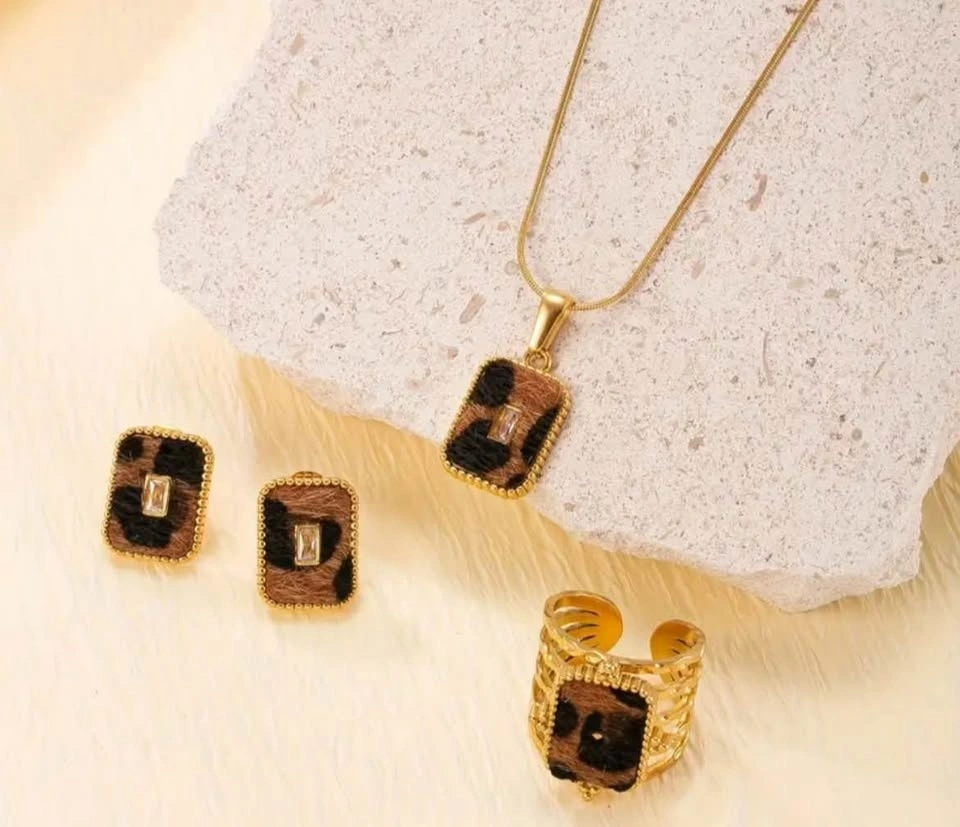 Leopard Print Stainless Steel Jewelry Set