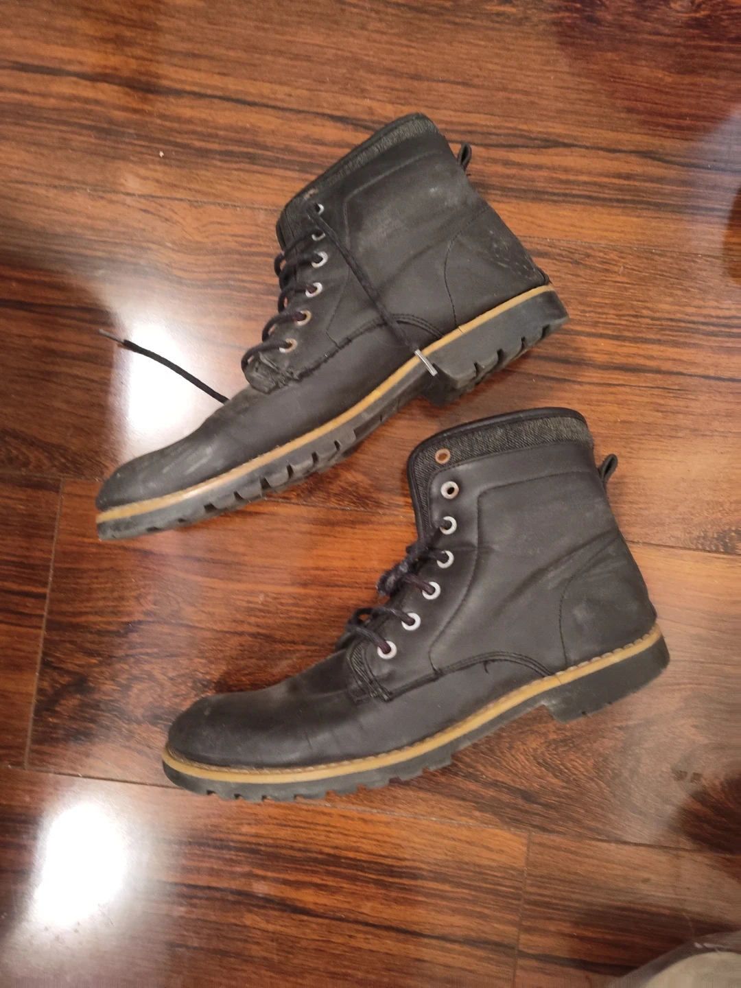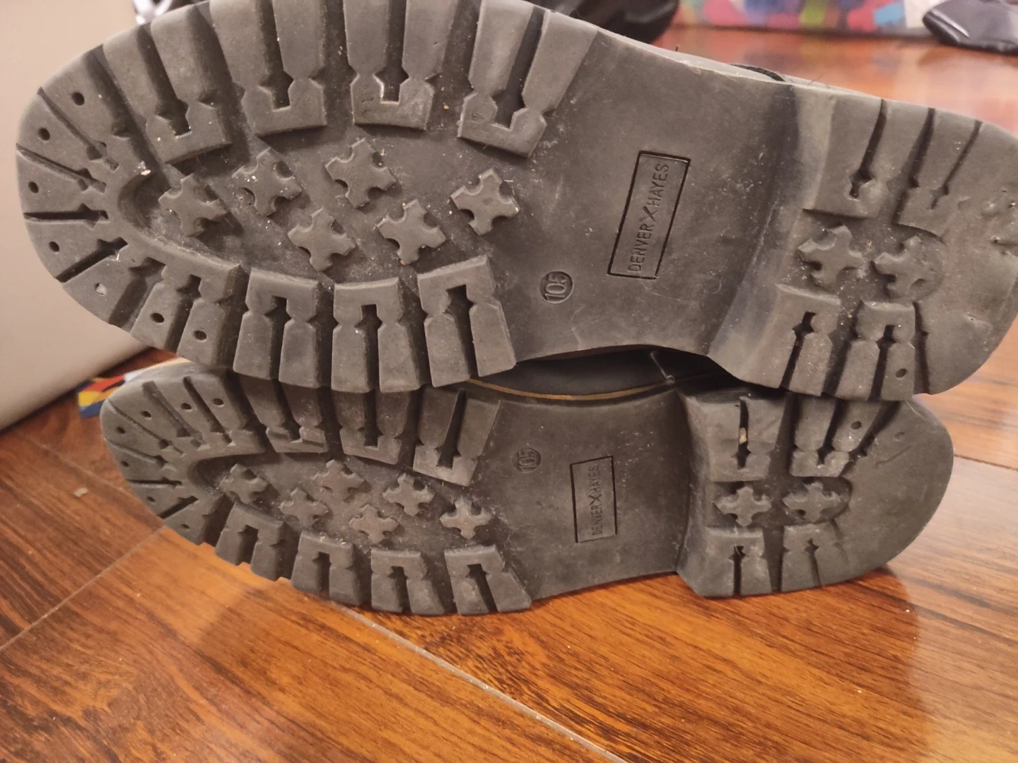 These Denver Hayes boots are made from black leather and feature a lace-up closure. They have a durable rubber sole with deep treads for good grip. Great for outdoor work or casual wear.