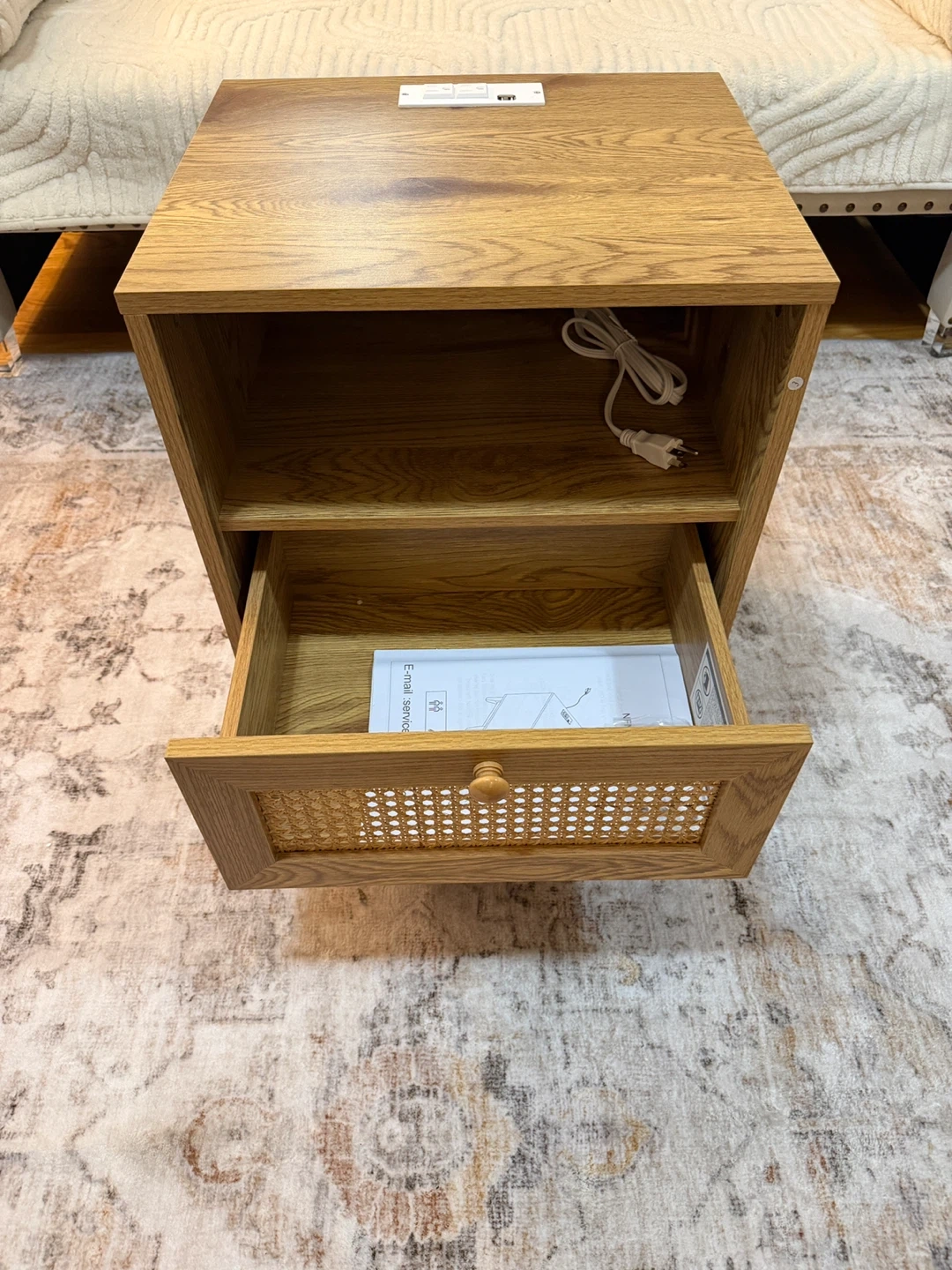 Rattan Nightstand with Drawer/USB Outlet
