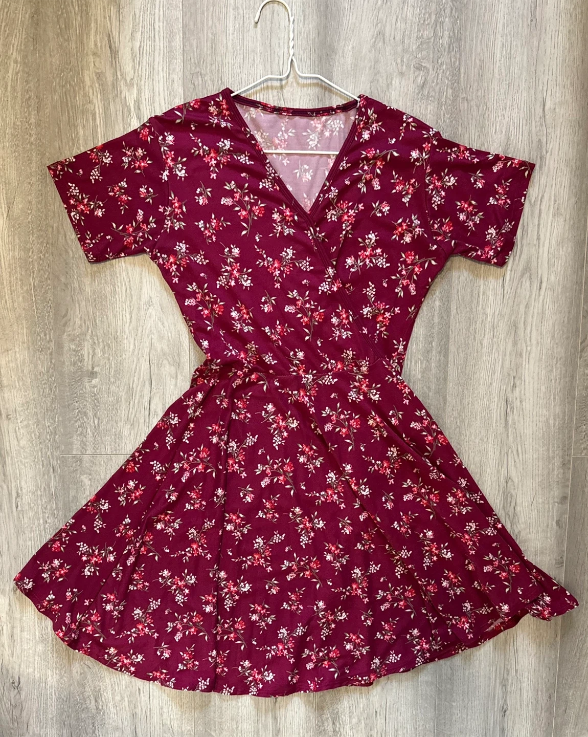 Pinkish Maroon Floral Print Short Dress