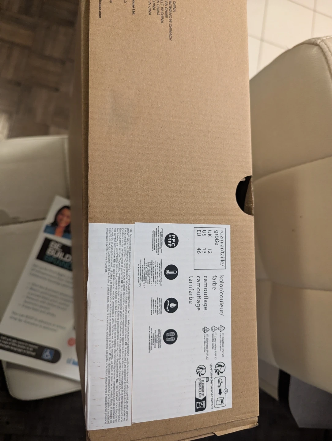 Brand new Mountain Warehouse winter boots in a camouflage pattern. Size 13 US, 12 UK, EU 46. These boots are waterproof and insulated for cold weather. Original box included.