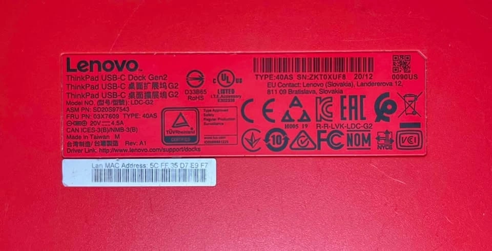 Lenovo ThinkPad USB-C Dock Gen 2 (40AS0090US)