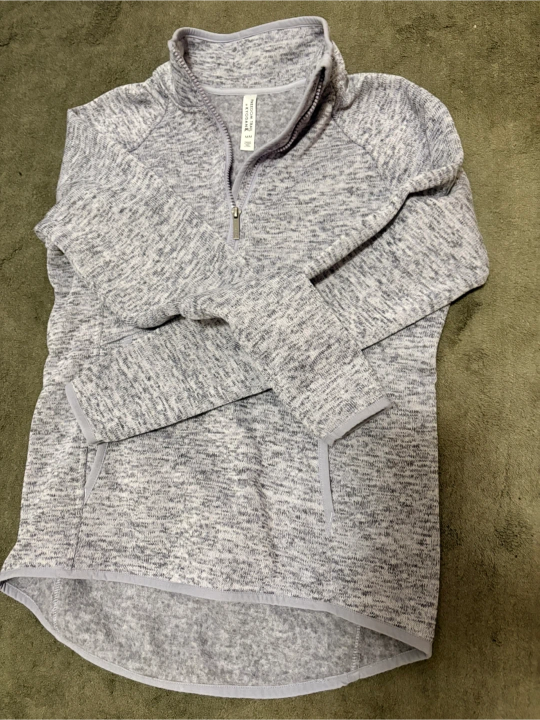 This heathered grey 1/4 zip pullover sweater is from Freedom Trail by Hudson's Bay.