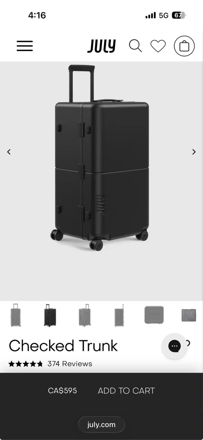This is a July Checked Trunk luggage. It's designed for travel and features a durable build. Great for longer trips and carrying all your essentials!