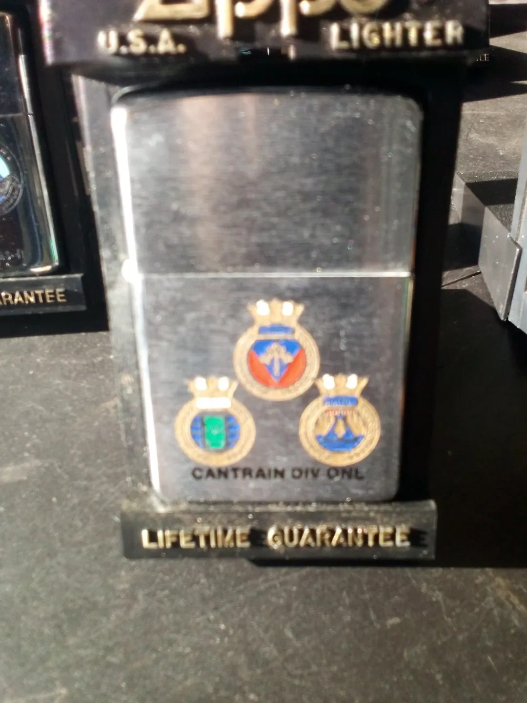 Buy & SellZippo Lighter - Cantrain Div OneZippo Lighter - Cantrain Div One$29This is a Zippo lighter with a "Cantrain Div One" emblem. It's made of metal and features a lifetime guarantee.ConditionNewWHERE TO MEETCheck LocationView MapSELLERnamekteLYorkson50 reviews0 chats·1 favorites·8 viewsSEND CHAT TO SELLERHi namekteL! I’m interested in your listing.Hi namekteL! I’m interested in your listing.Get the Karrot app to chatSign In to chat