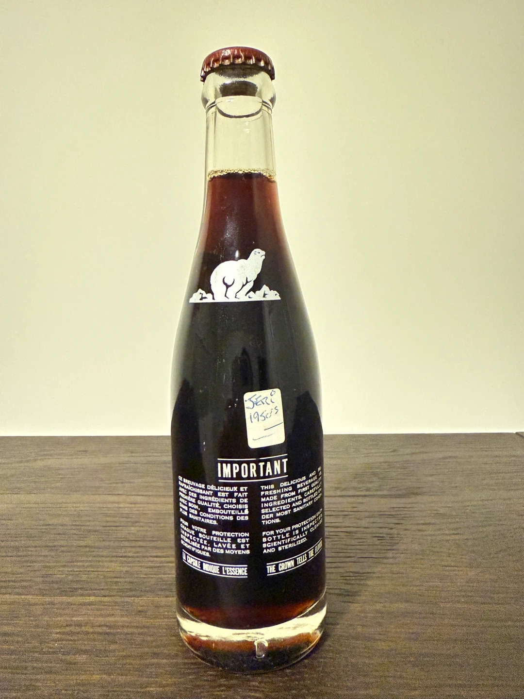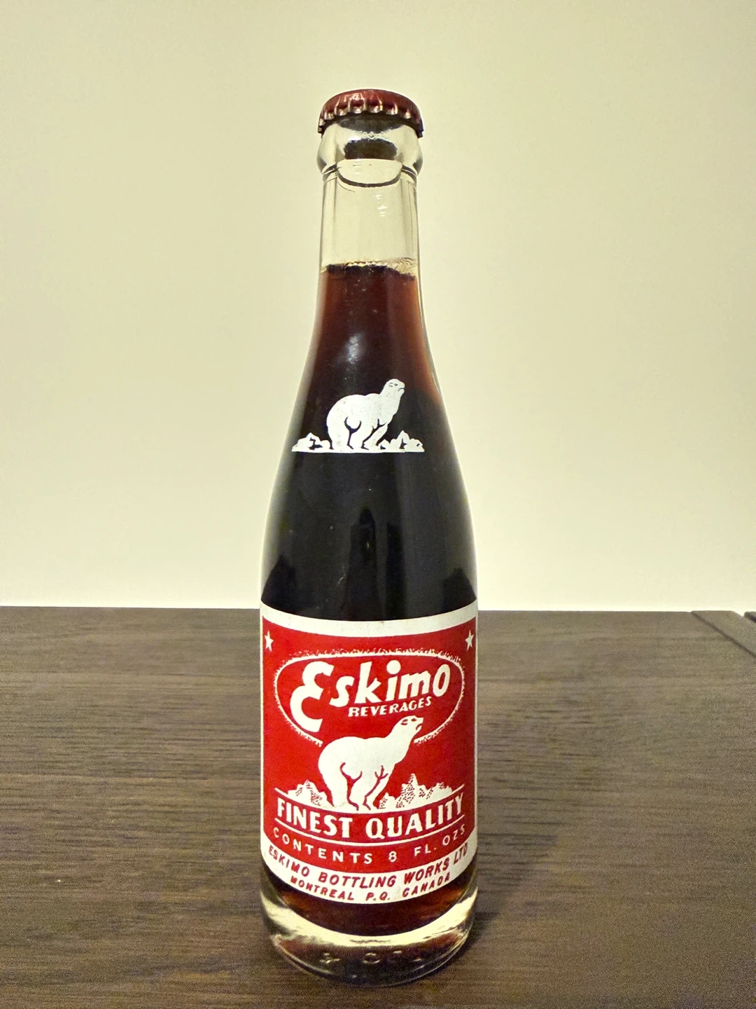 1950s Eskimo coke finest quality root beer. Contents 8 fl. oz. Bottled by Eskimo Bottling Works Ltd. Montreal, Canada.