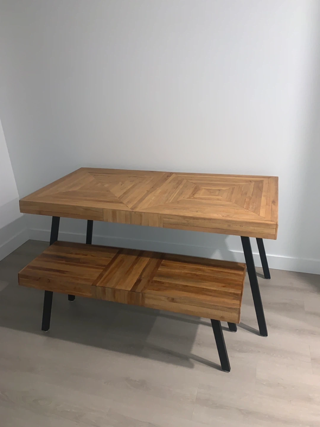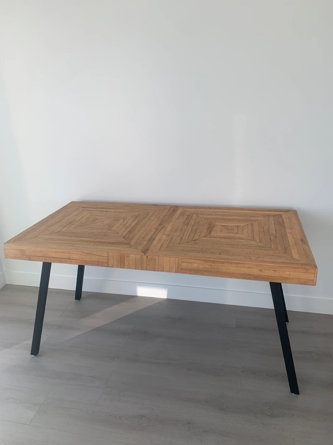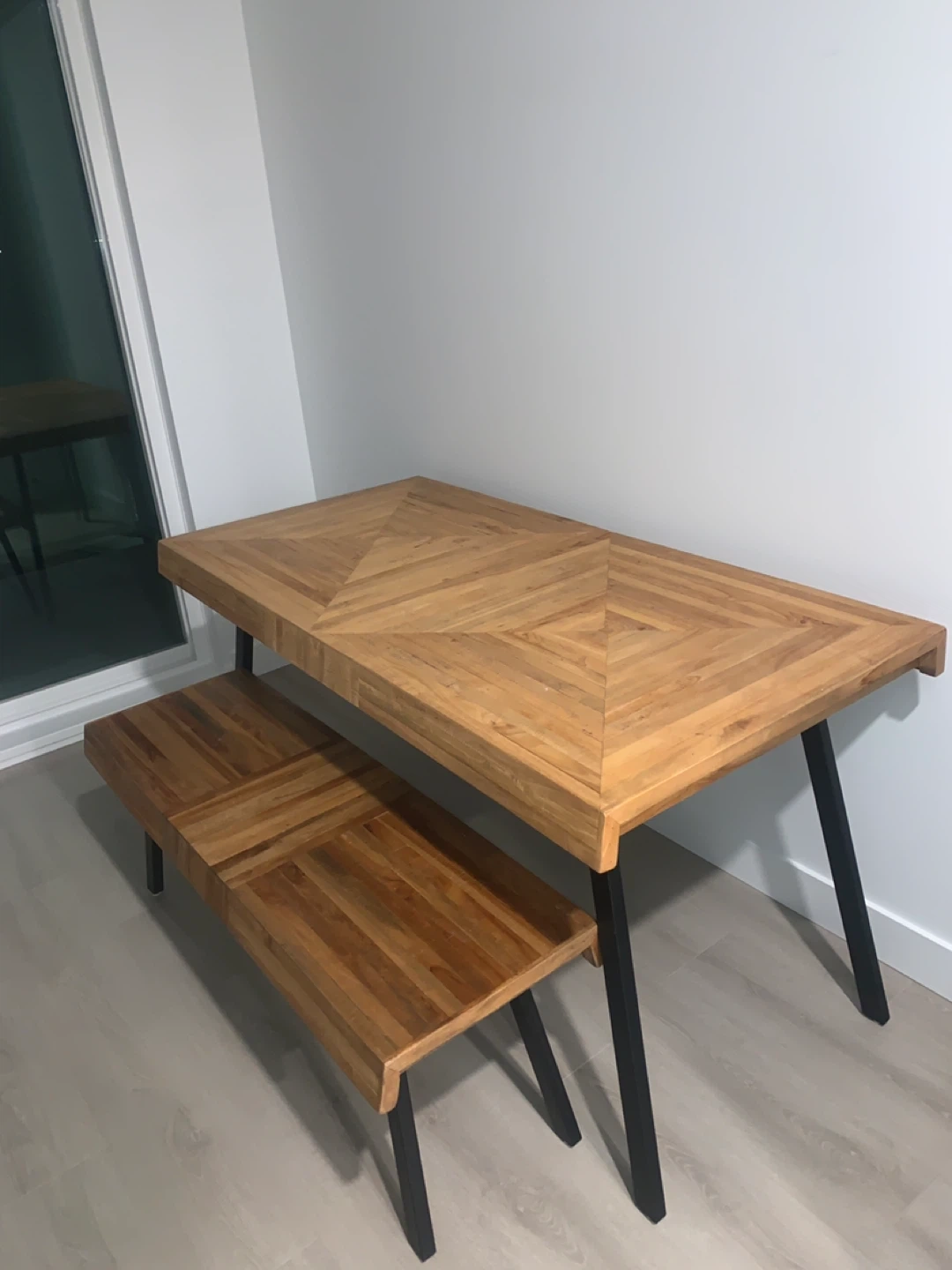 Buy & SellTeakwood dining table and benchTeakwood dining table and bench$400Solid reclaimed teakwood table and bench with metal legs. L= 58 3/4 inches x W = 29 inches x H = 30.5 inches . $400oboWHERE TO MEETCheck LocationView MapSELLERMattN Delta100 reviews0 chats·1 favorites·22 viewsSEND CHAT TO SELLERHi Matt! I’m interested in your listing.Hi Matt! I’m interested in your listing.Get the Karrot app to chatSign In to chat