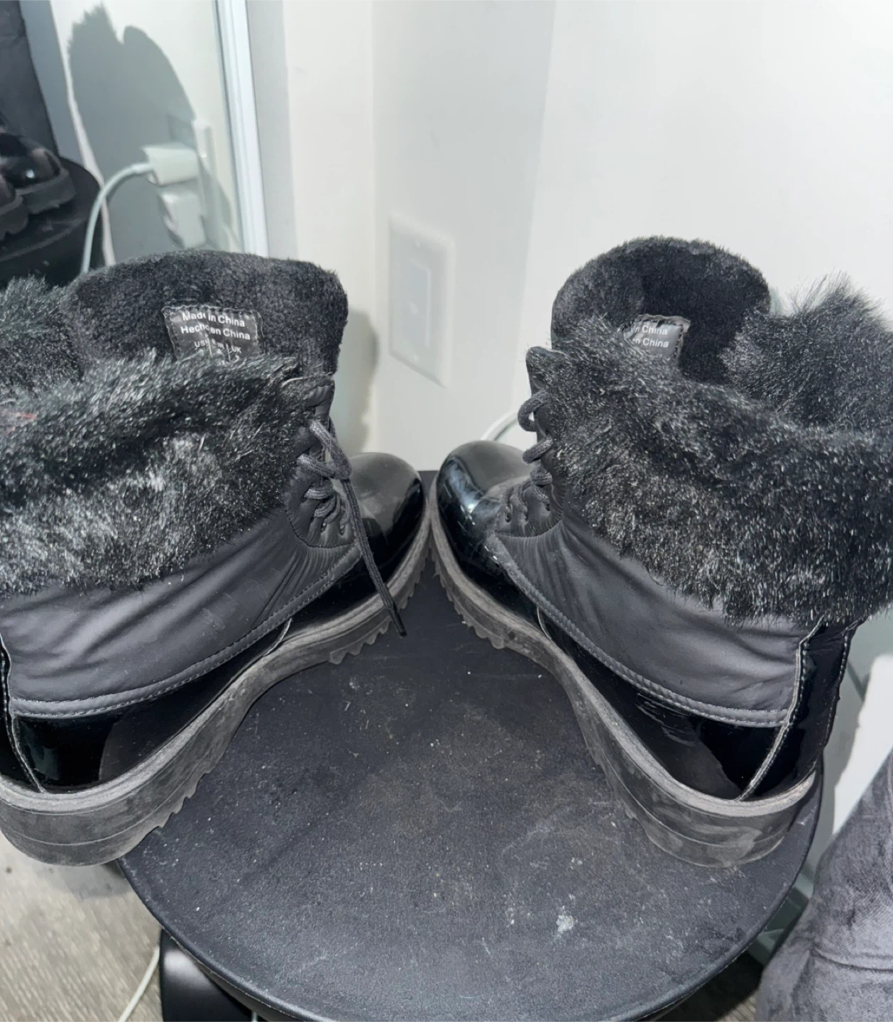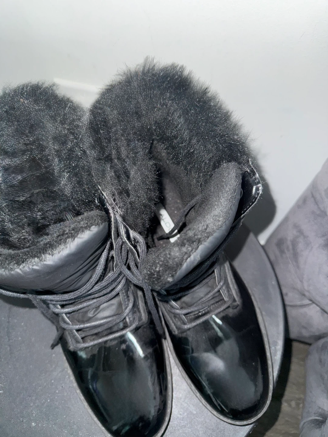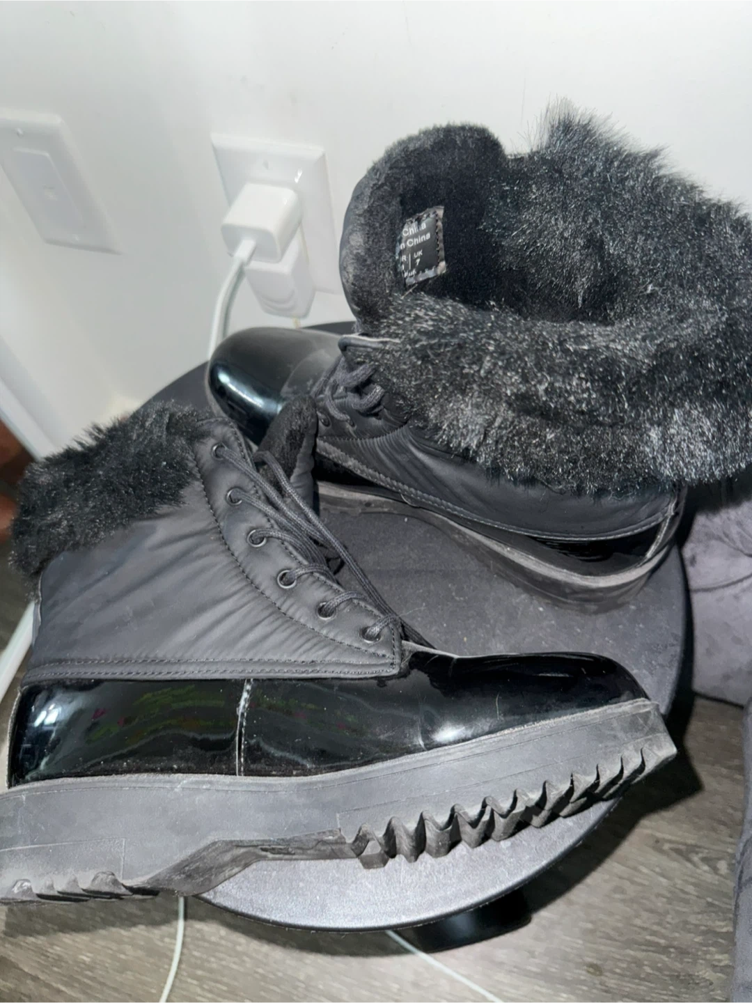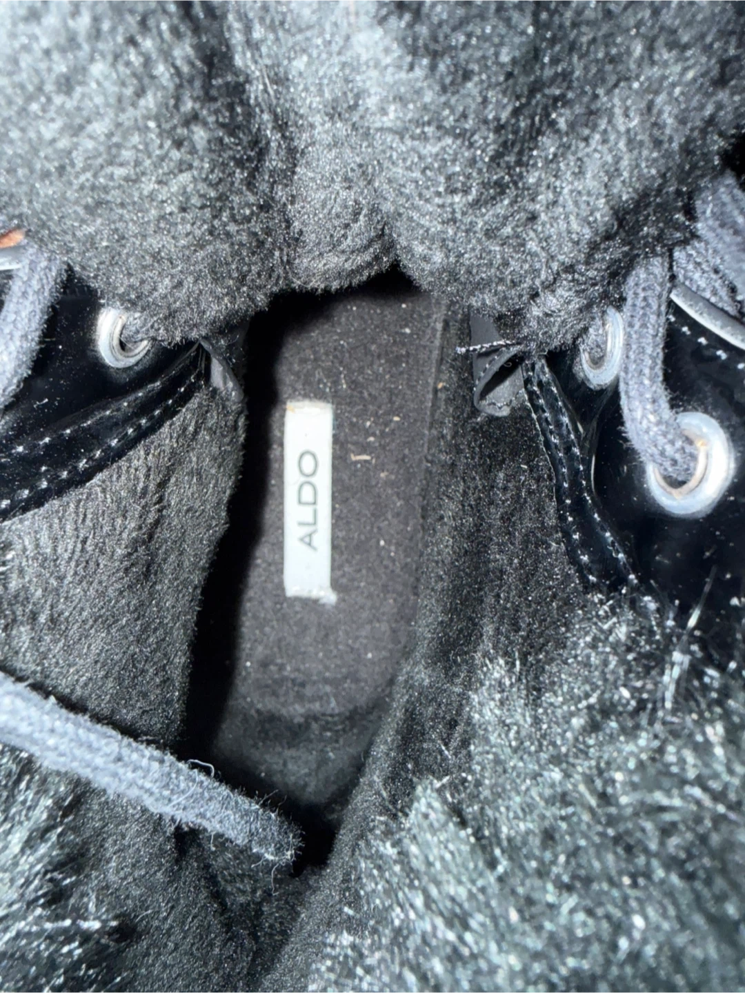 These ALDO winter boots are black with a cozy faux fur trim. They feature a shiny patent leather toe and sides with nylon uppers. Laces provide a secure fit. Keeps your feet warm during colder months! We’re in the midst of a Polar Vortex👉get these ☃️ Price is negotiable.