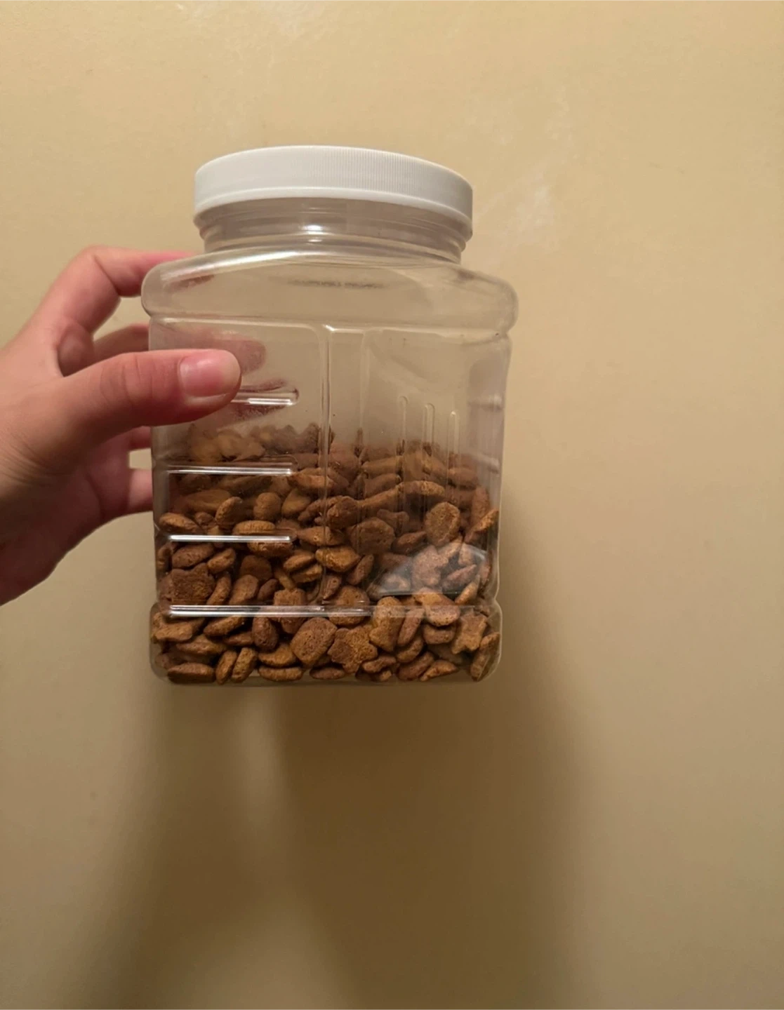 This is a large container of Purina Friskies Party Mix cat treats. It features Chicken & Gravy Flavours and a Crunchy & Creamy finish. Best by September 2024. 454g.