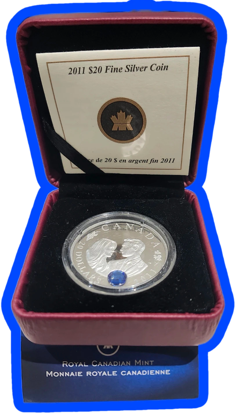 That is a beautiful piece of Canadian numismatic history! What you have is the 2011 $20 Fine Silver Royal Wedding Coin, minted by the Royal Canadian Mint to commemorate the marriage of Prince William and Catherine Middleton.