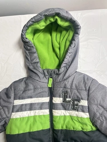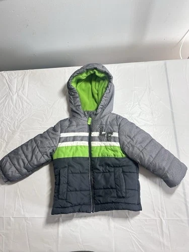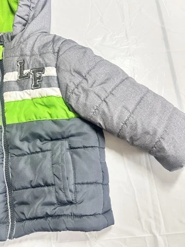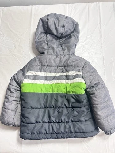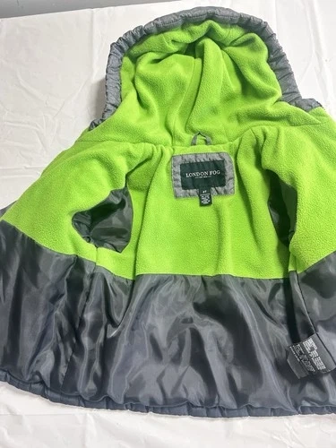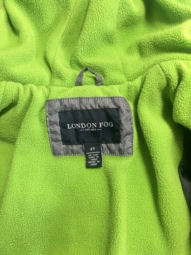 This London Fog winter jacket for boys in size 2T is a solid gray color with a zip closure and long sleeves, perfect for casual occasions. The jacket features a hood and is made of 100% polyester with polyester insulation, making it machine washable for easy care. With a puffer style design, this jacket is ideal for walking in the winter season while keeping your little one warm and stylish.