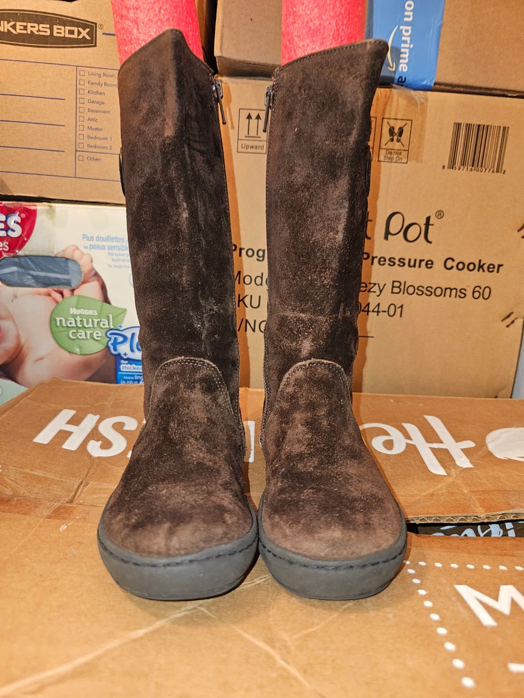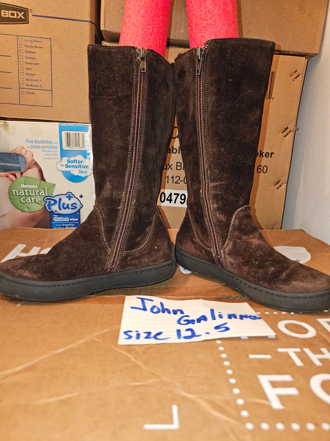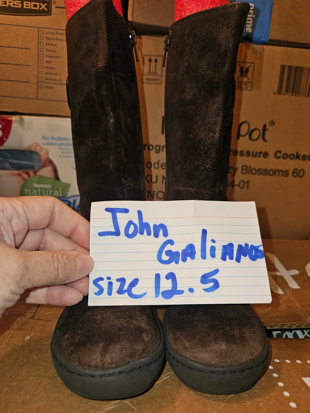 Brown suede boots from John Galliano. Side zippers for easy on and off. Leather Lined