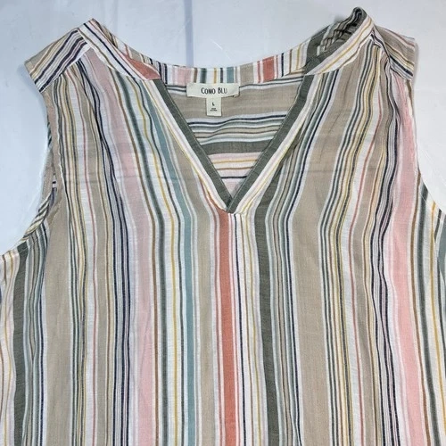 This Como Blu striped V-neck blouse is a stylish and versatile piece for casual occasions. Made from a comfortable blend of polyester and rayon, this pullover blouse features a classic striped pattern and a flattering V-neckline. Easy to care for with machine washable instructions, this multicolor blouse is perfect for summer and spring seasons. The basic style and regular fit make it a timeless addition to any woman's wardrobe.