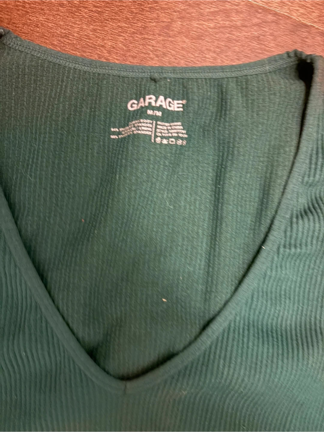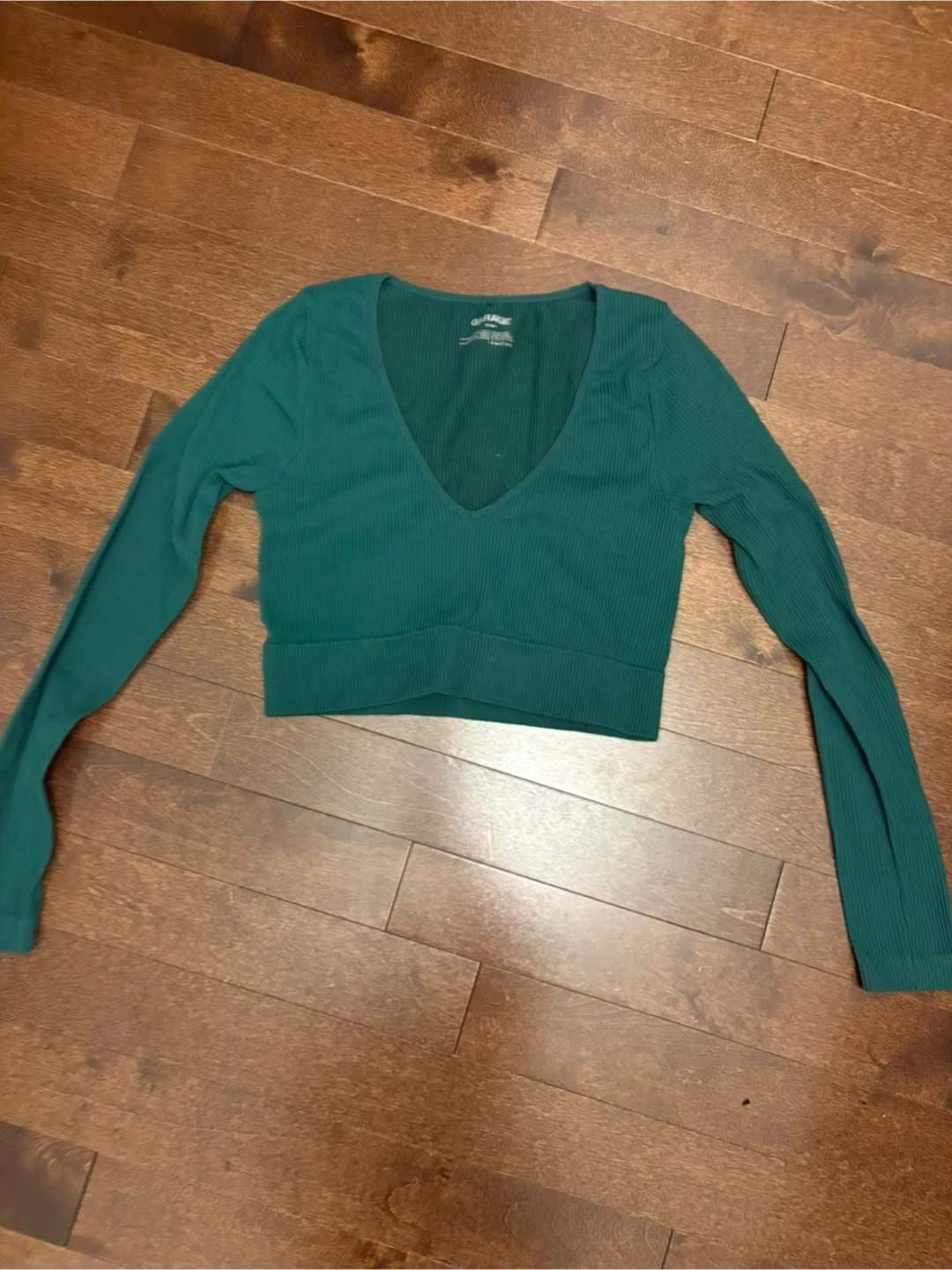 GARAGE ribbed long sleeve crop top. It's a size medium/petite. Fabric is a soft stretchy blend. Perfect for layering or wearing on its own!