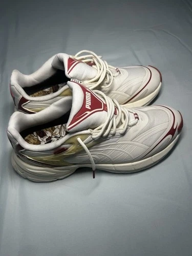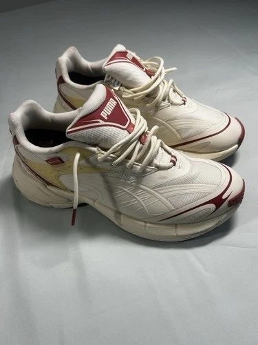 The PUMA Velophasis GORE-TEX 'GORP' Sneaker in Frosted Ivory and Red is a stylish and versatile athletic shoe designed for men. Made with a textile upper material, this sneaker features a unique design with a frosted ivory color and red accents. The PUMA Velophasis model offers both comfort and performance, making it an ideal choice for sports or casual wear. The size US 10 ensures a perfect fit for a range of activities.