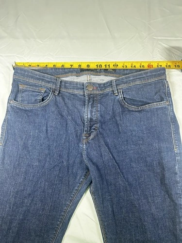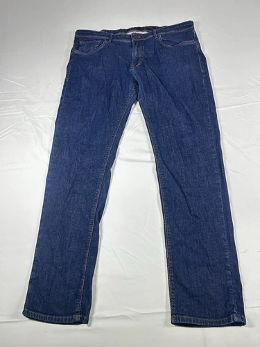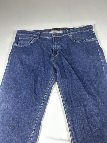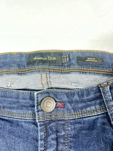 Vintage men's jeans by Massimo Dutty in a slim fit and size 36. The jeans come in a classic blue color, perfect for achieving a slimming look. Made for the modern man who values style and comfort, these jeans are a timeless wardrobe staple that can be dressed up or down for any occasion. The slim fit and regular size make them suitable for a wide range of body types, allowing for a custom and flattering fit.