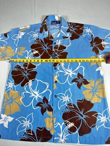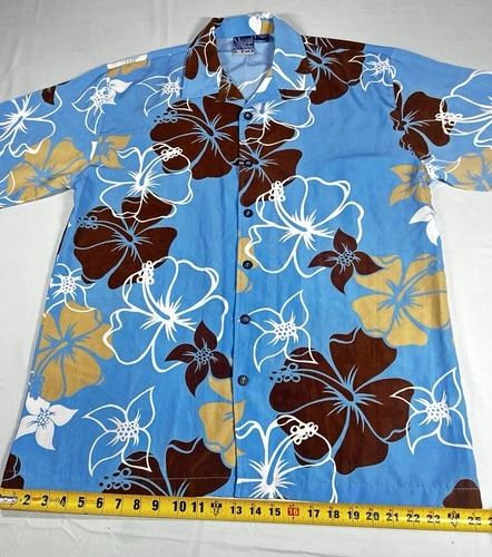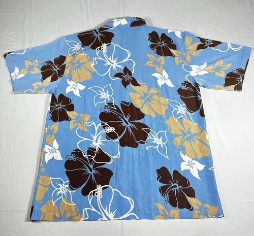 C-TWO Man’s Shirt Size XL / Hawaiian Style / Blue & Brown / Flor