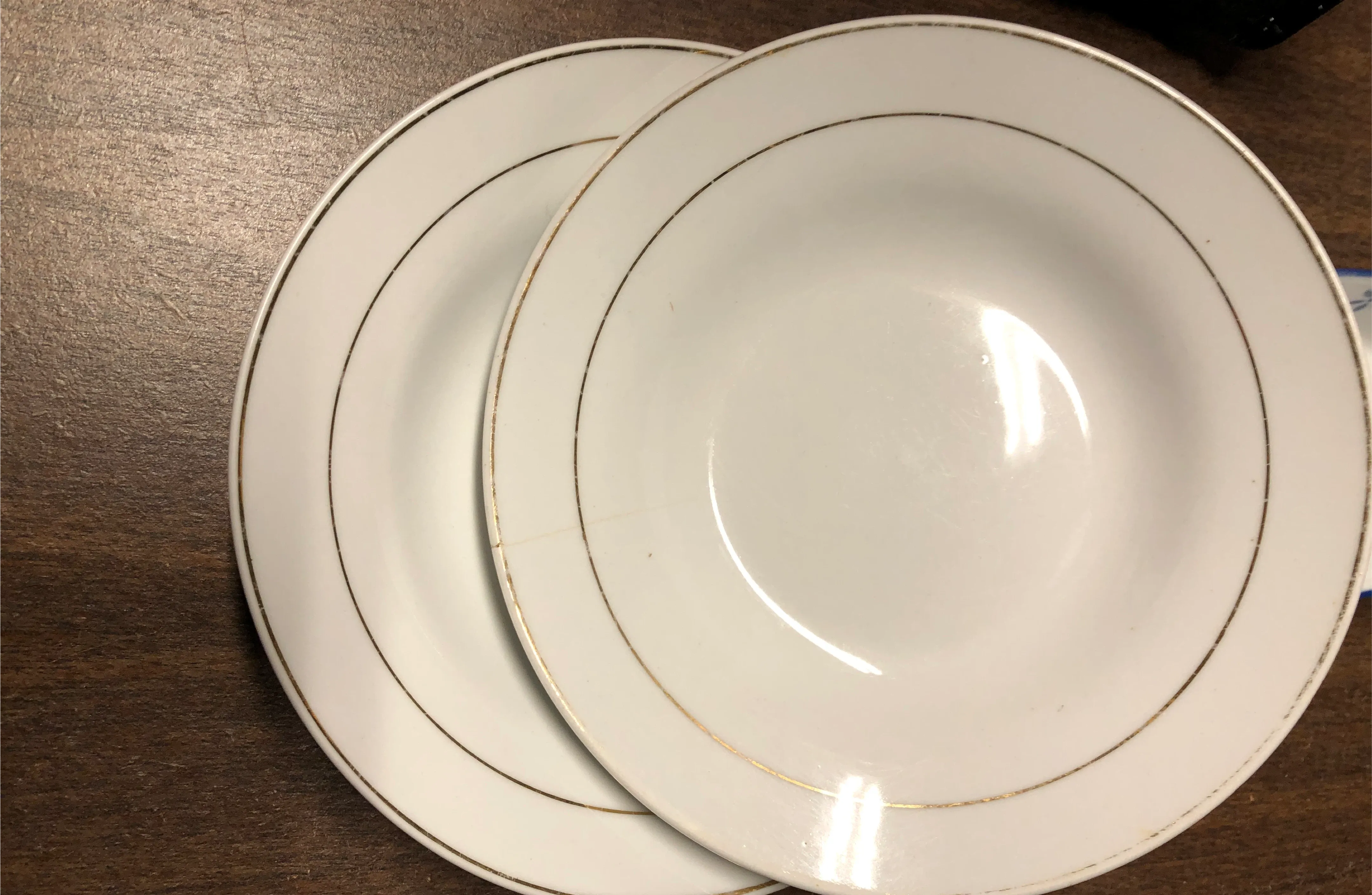 🆓Set of 2 White Soup Bowls with Gold Rim