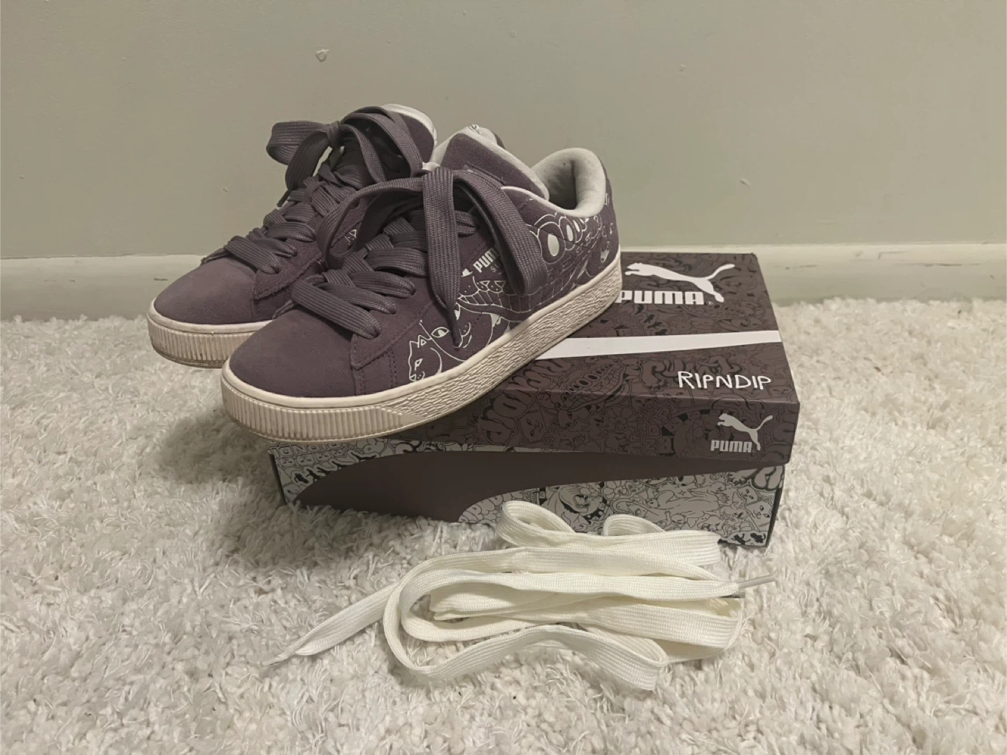 Puma Suede XL Rip N Dip sneakers in plum jam-warm white. Includes original box and extra white laces. Pickup only. No delivery!