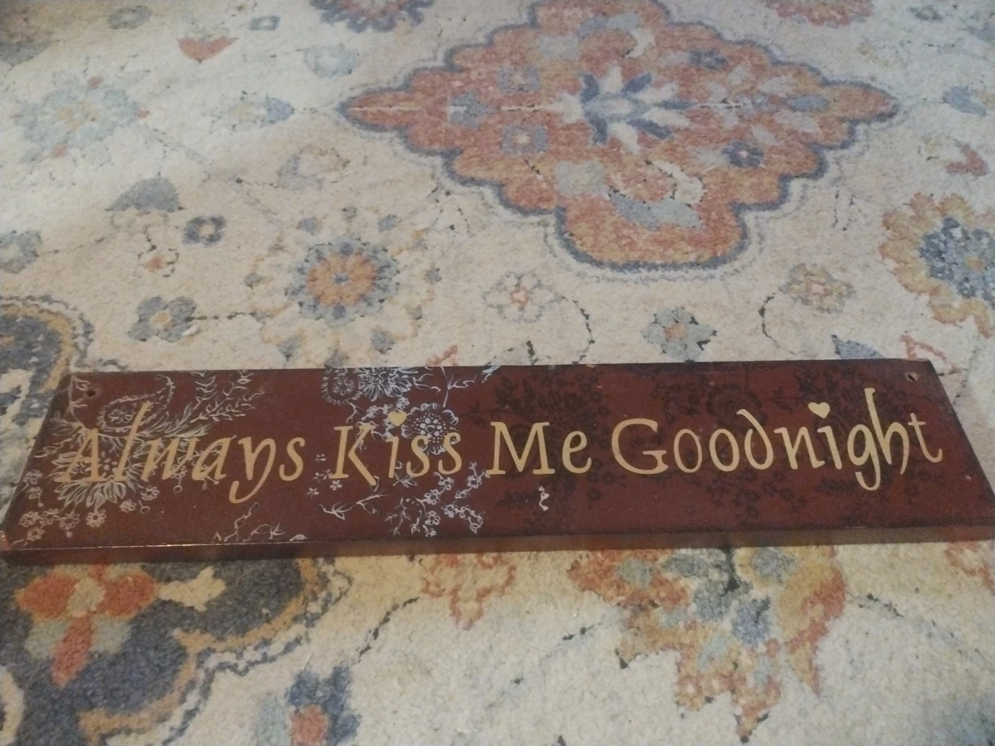A set of two wooden decorative signs. One sign reads 'Always Kiss Me Goodnight' with a floral design. The other sign features carved lettering that says 'I Love You To The Moon And Back'. These signs add a sweet touch to any home decor.