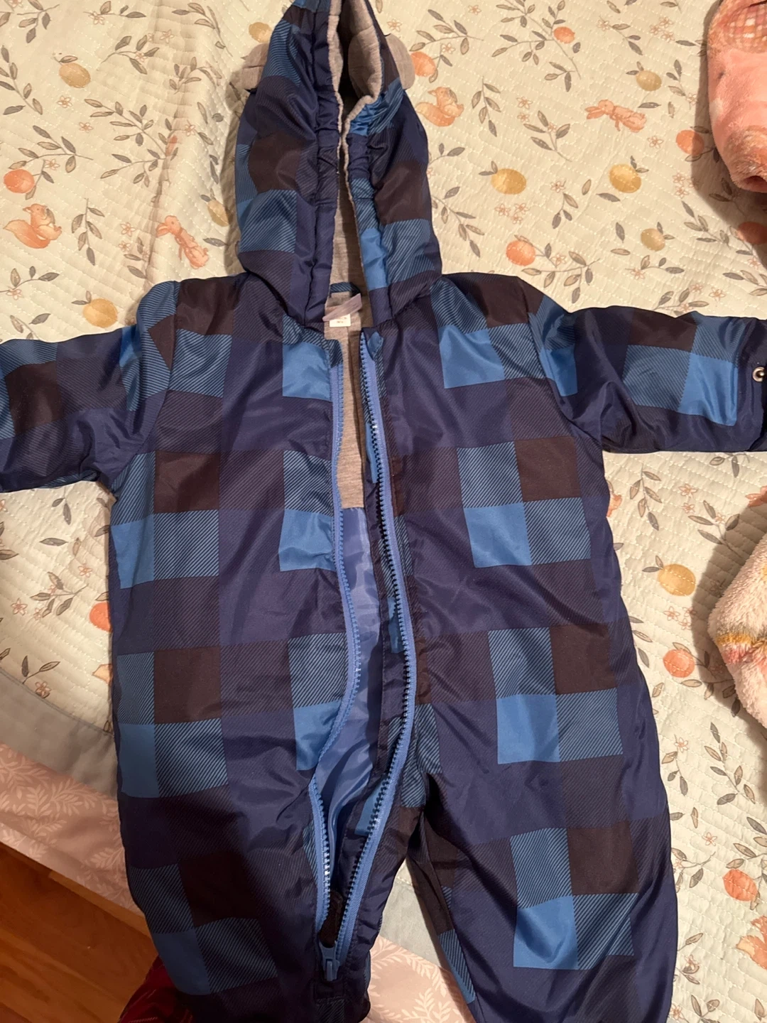 NEVER WORN 6-9M Baby Snowsuit- Blue Plaid