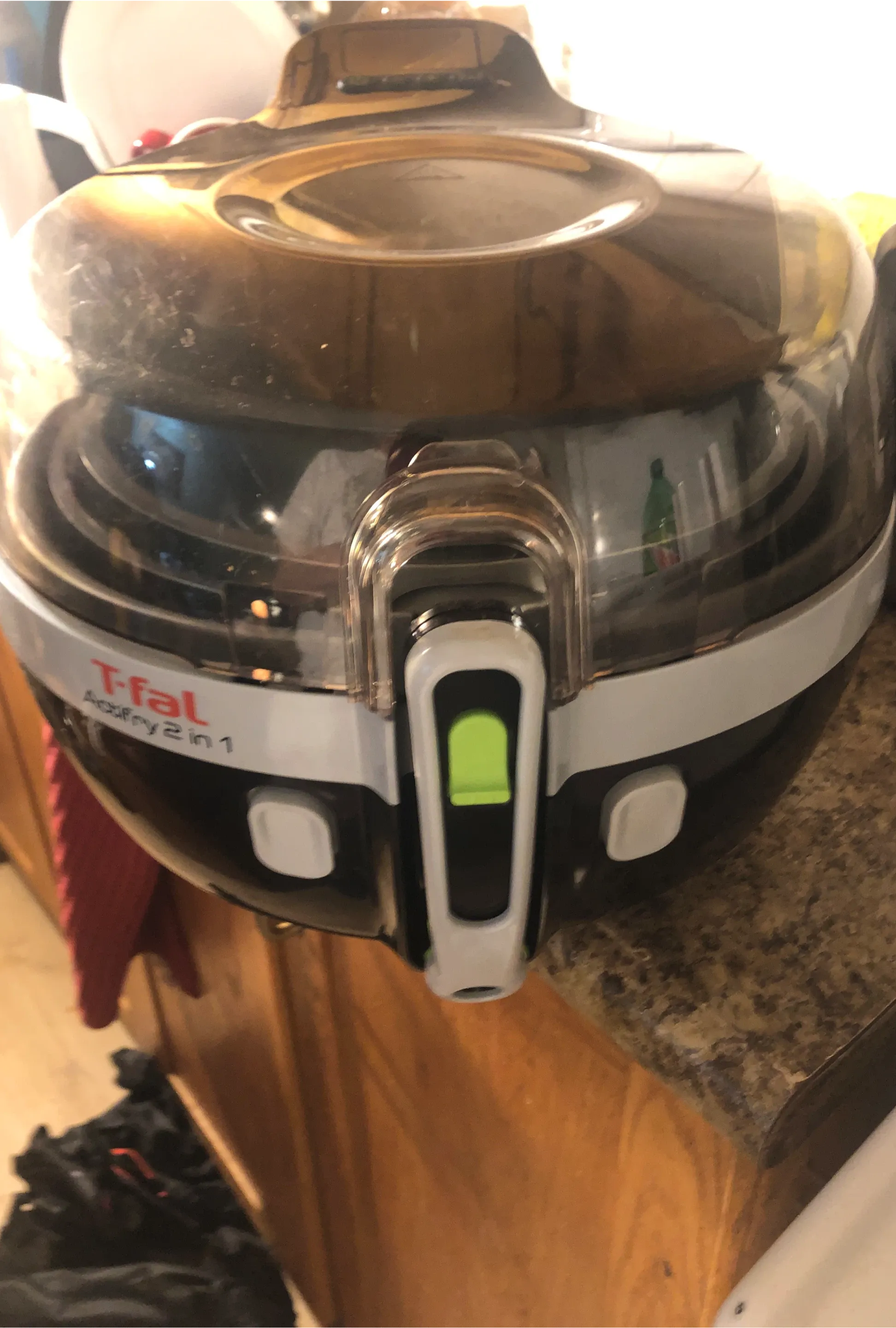 It's a T-fal Actifry 2-in-1 air fryer. This kitchen appliance allows for quick and easy cooking. It's ideal for making various dishes, from fries to chicken. When would someone use this? For busy weeknights or when entertaining guests!