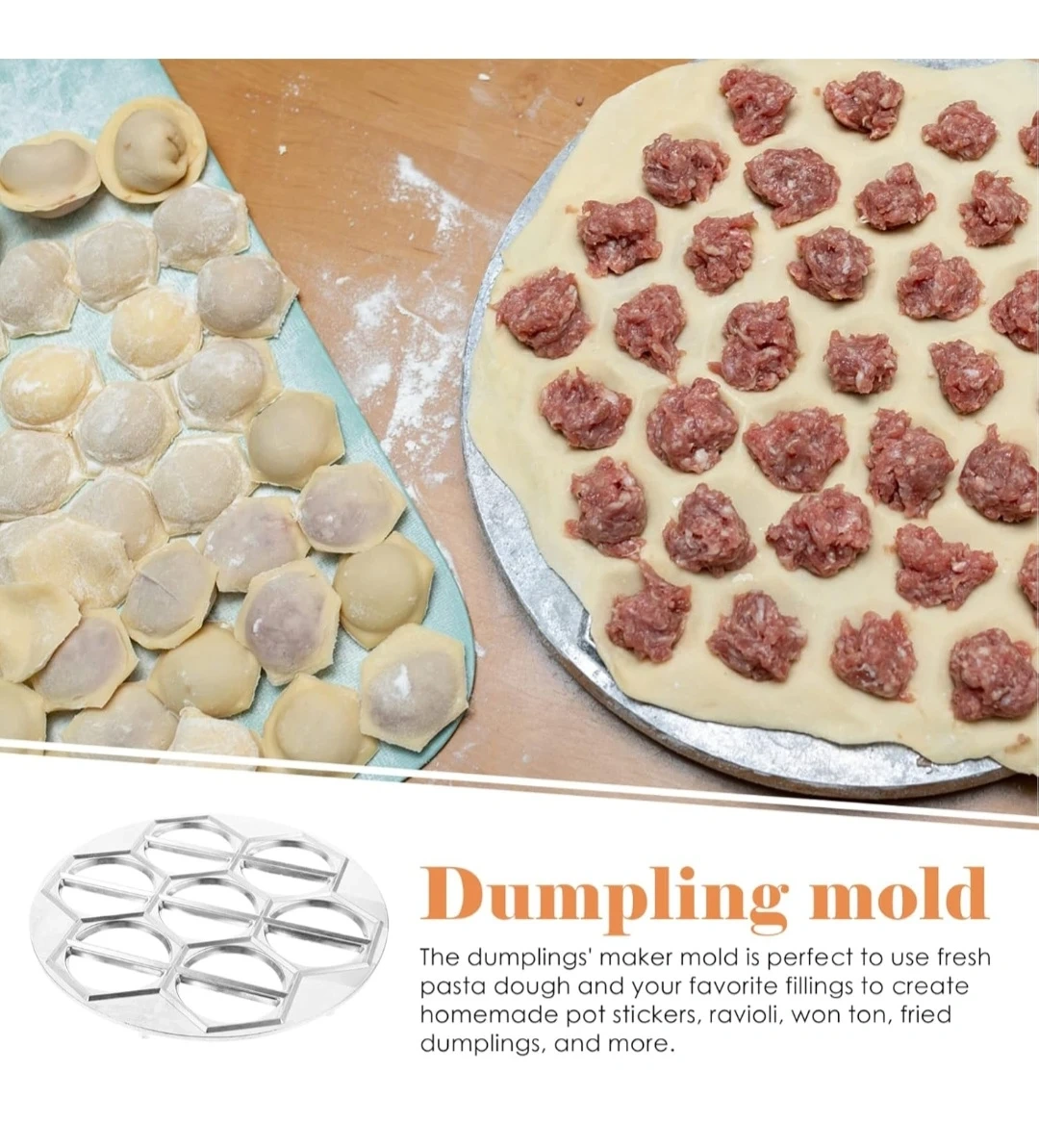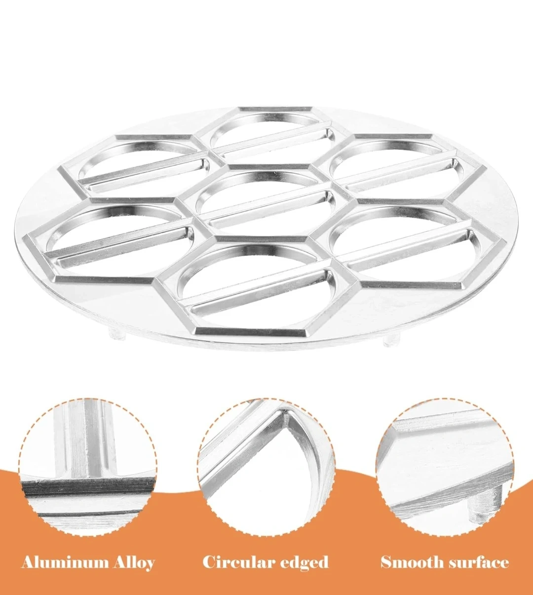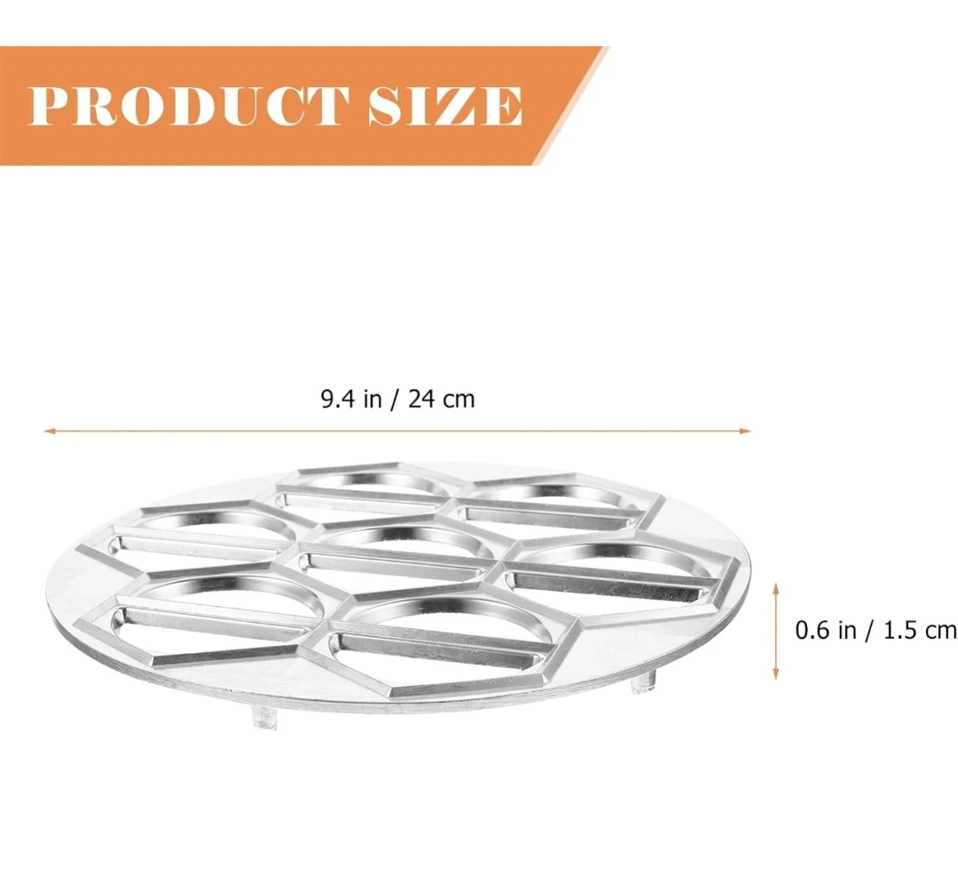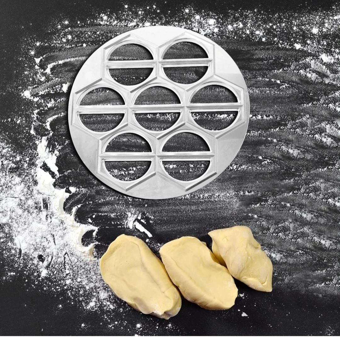 This aluminum alloy dumpling mold makes fresh pasta and your favourite fillings. It's circular edged with a smooth surface. This mold is great for creating pot stickers, ravioli, wonton, and fried dumplings. Use this for quick and easy dumpling making!