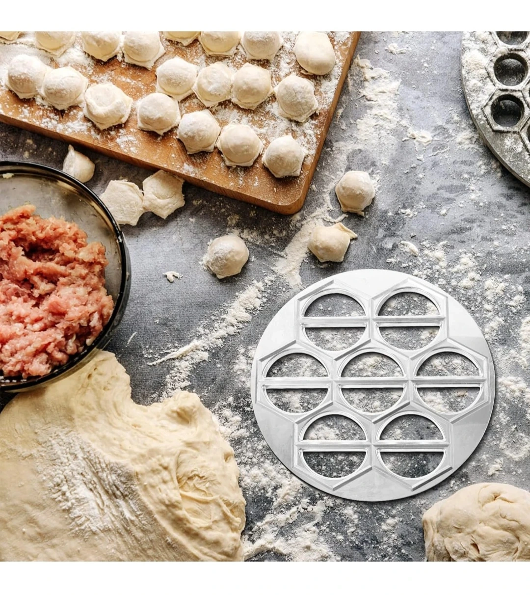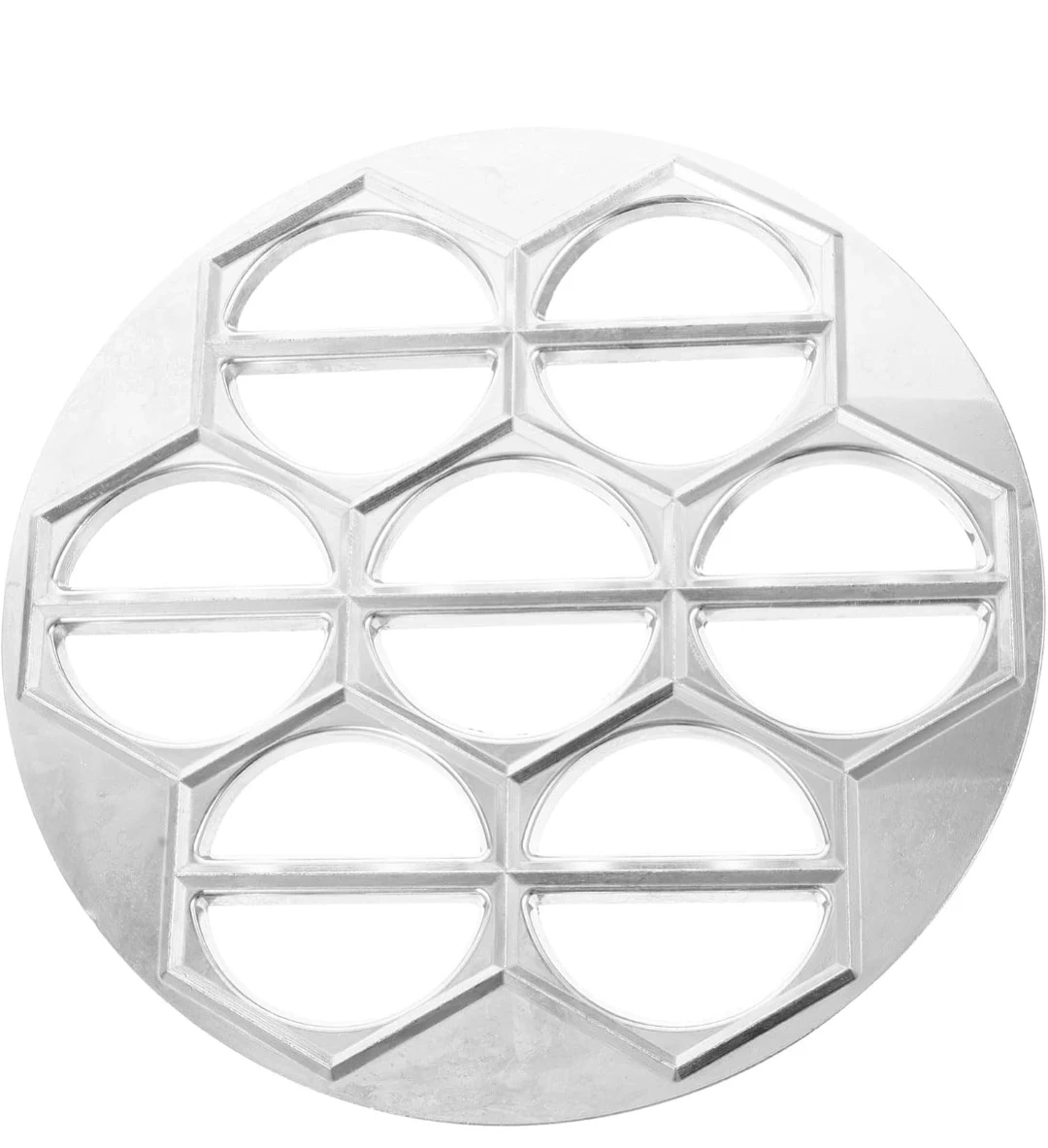 This aluminum alloy dumpling mold makes fresh pasta and your favourite fillings. It's circular edged with a smooth surface. This mold is great for creating pot stickers, ravioli, wonton, and fried dumplings. Use this for quick and easy dumpling making!