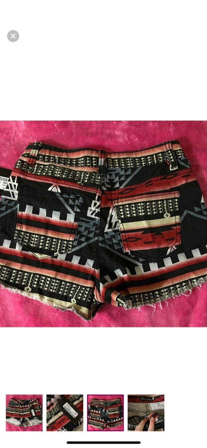 Harlow women's shorts with an Aztec-inspired pattern. Features a frayed hem.