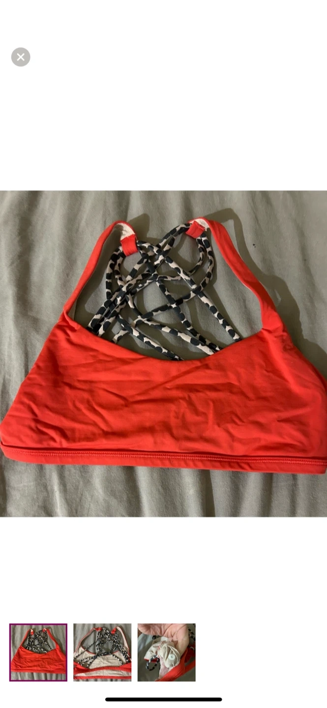 Lululemon sports bra in a bright orangey colour.
