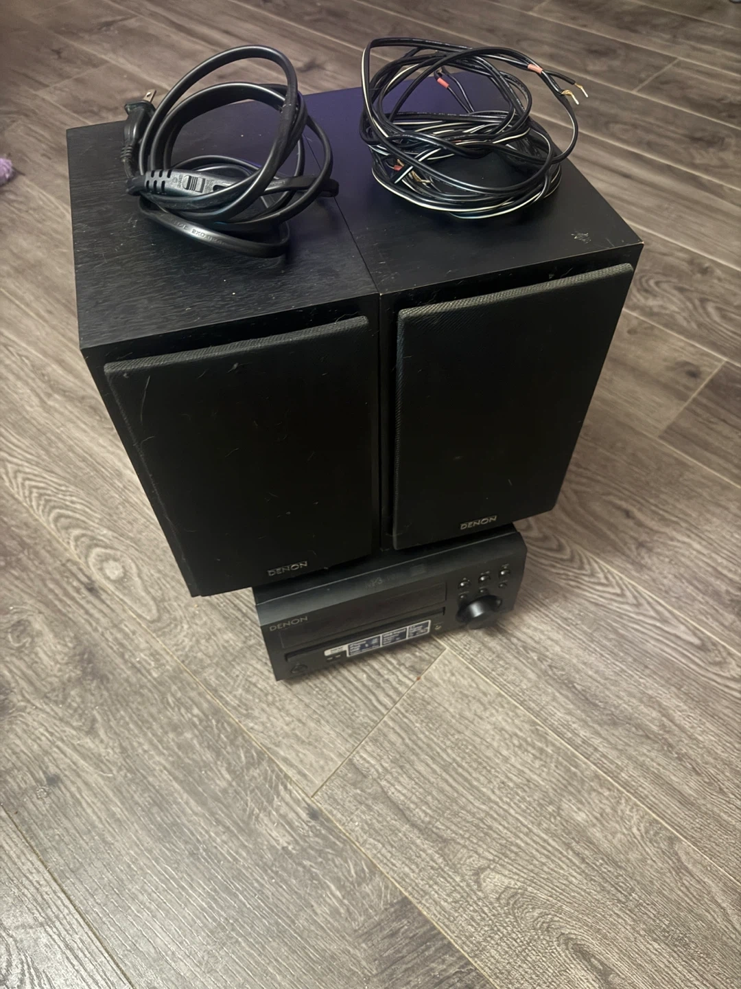 Comes with Receiver and Speakers, speaker cable, and power cables. Does not include remote.