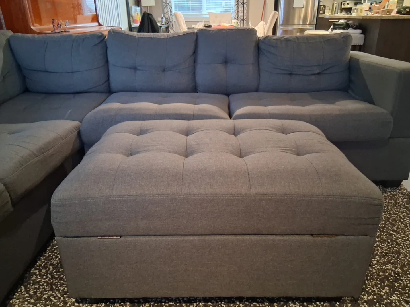 Buy & SellGrey Sofa with Storage OttomanGrey Sofa with Storage Ottoman$488Grey sofa used. Upholstered in a durable fabric. Ample seating space and hidden storage in the ottoman.ConditionGoodWHERE TO MEETCheck LocationView MapSELLERAliciaNewton100 reviews4 chats·1 favorites·162 viewsSEND CHAT TO SELLERHi Alicia! I’m interested in your listing.Hi Alicia! I’m interested in your listing.Get the Karrot app to chatSign In to chat