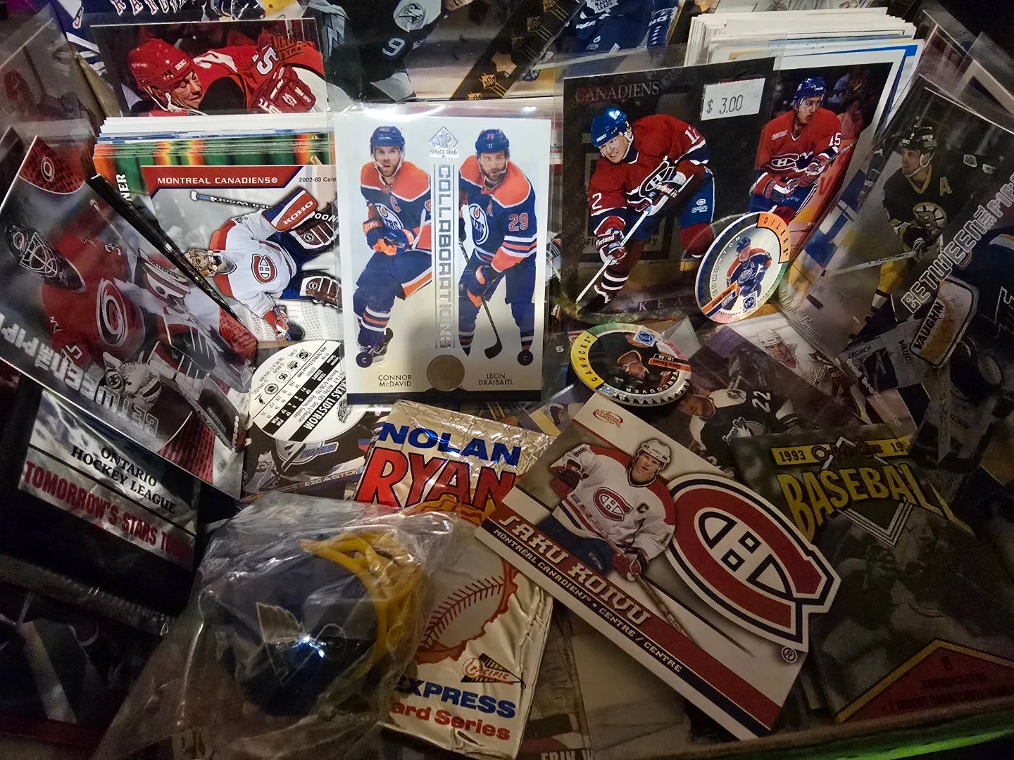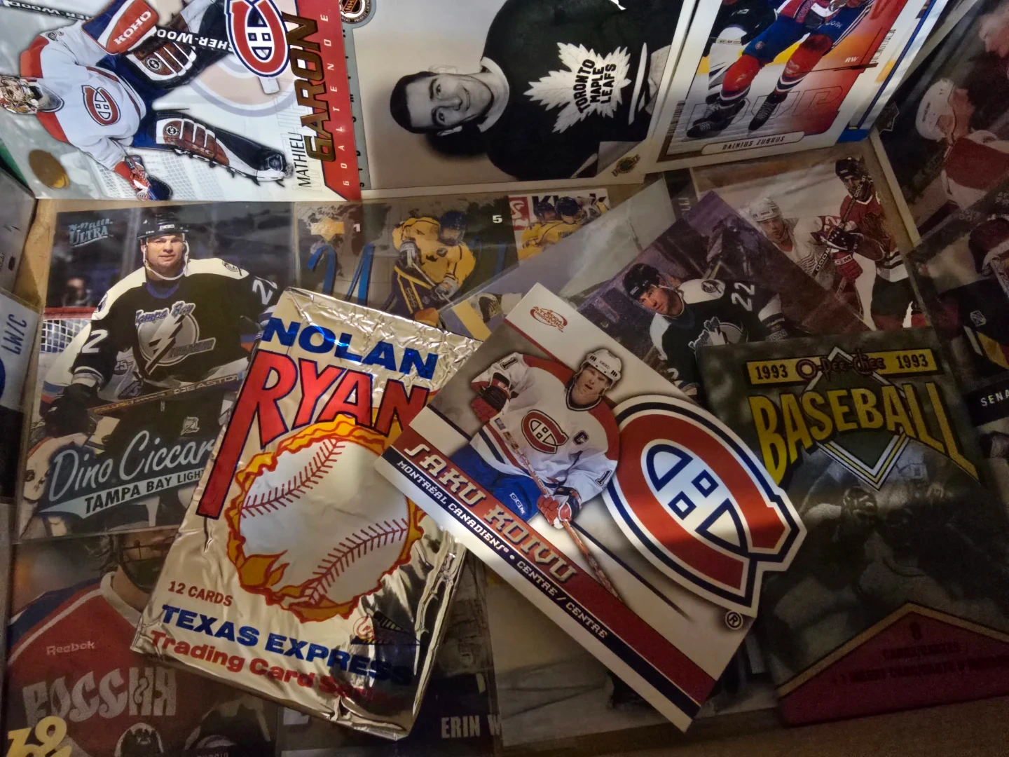 A collection of hockey and baseball trading cards is up for grabs. This lot includes various players and teams. They're great for collectors!