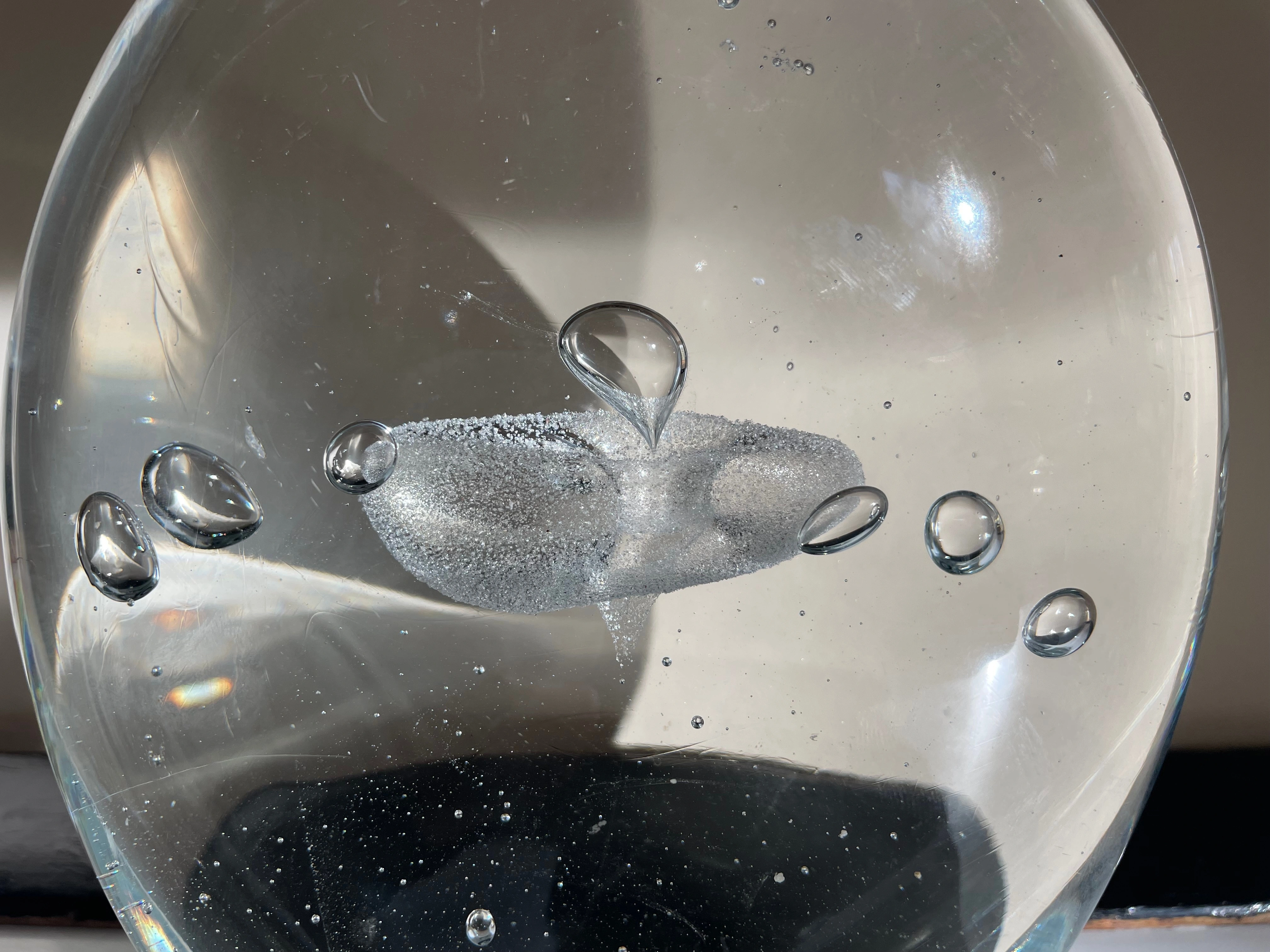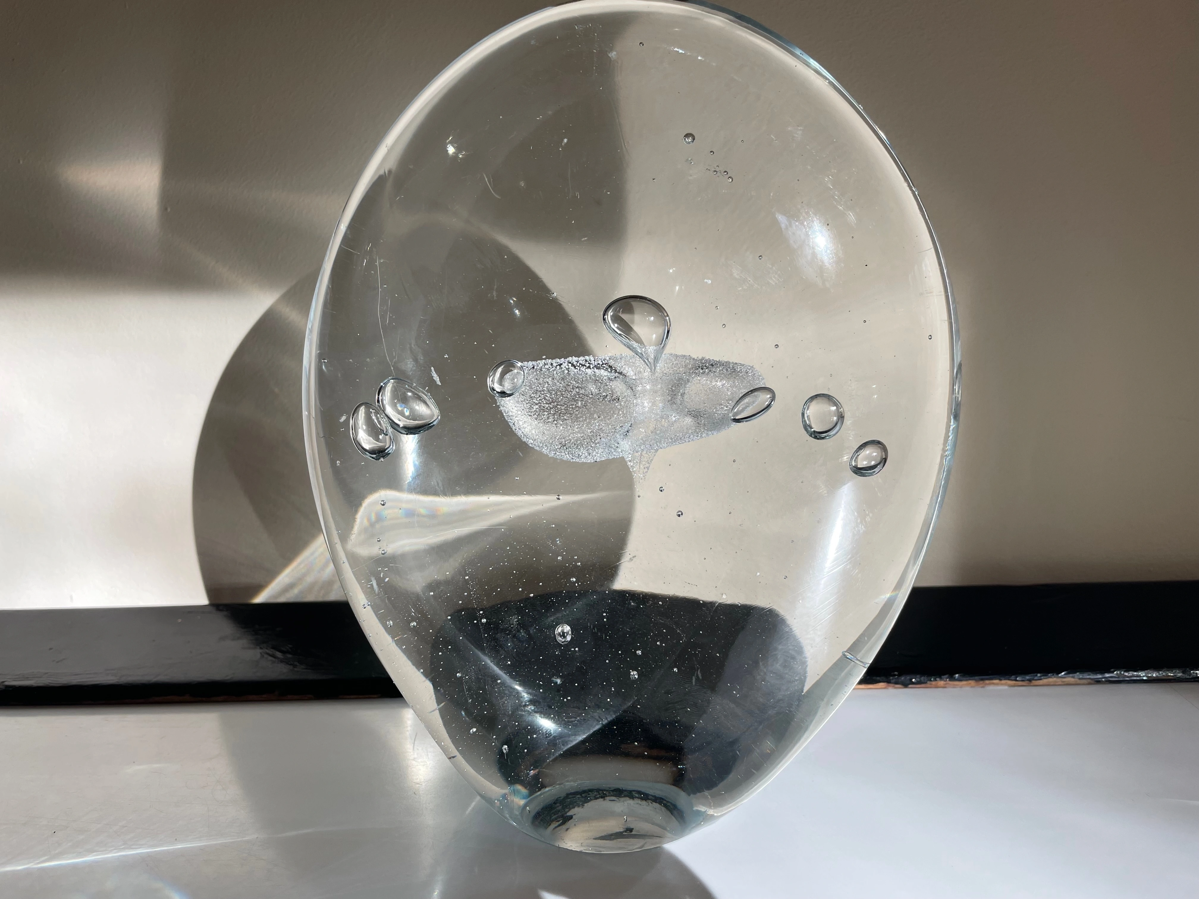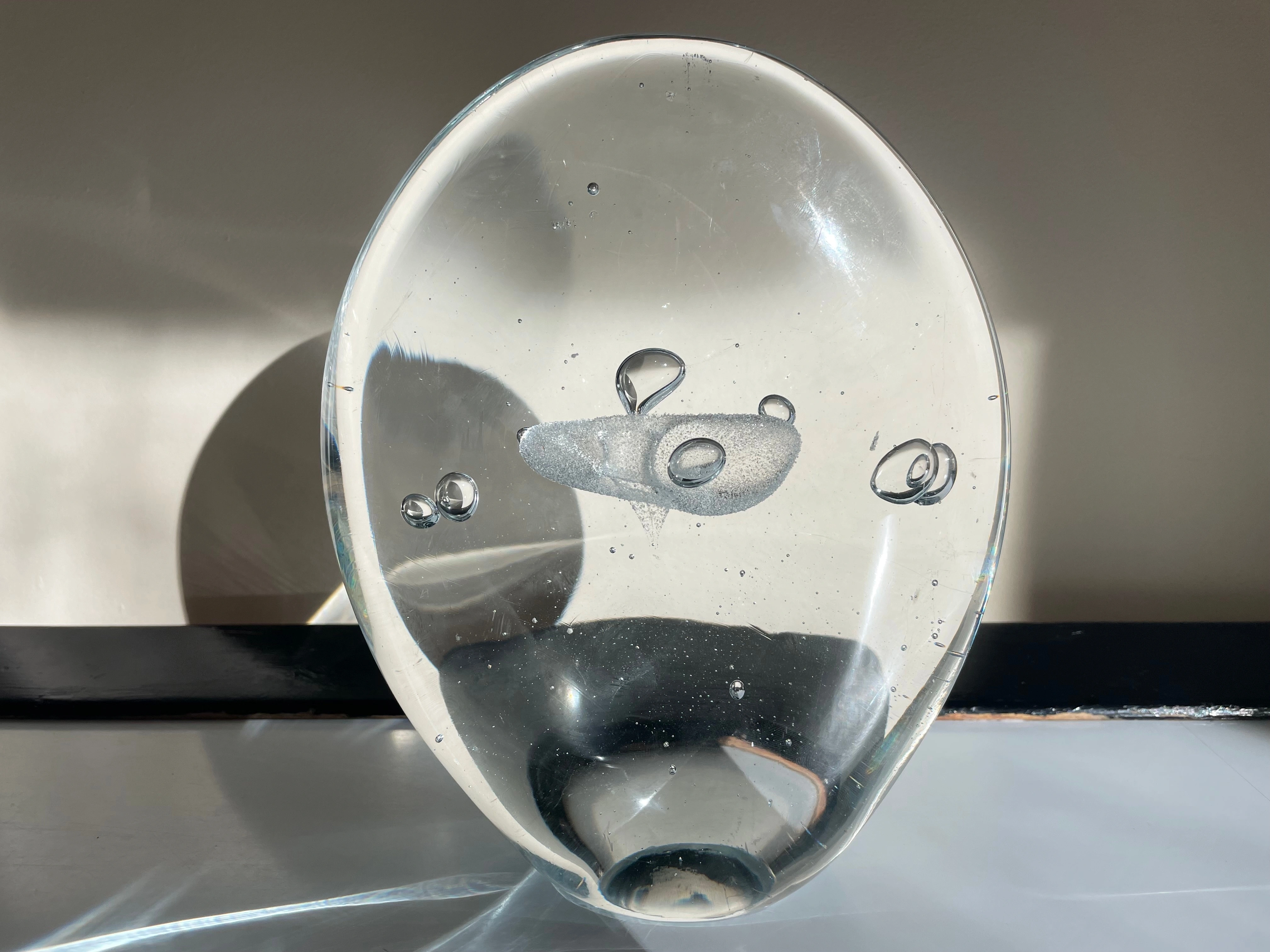 Large Hand-Blown Murano “Egg”. Controlled Release Air Bubbles