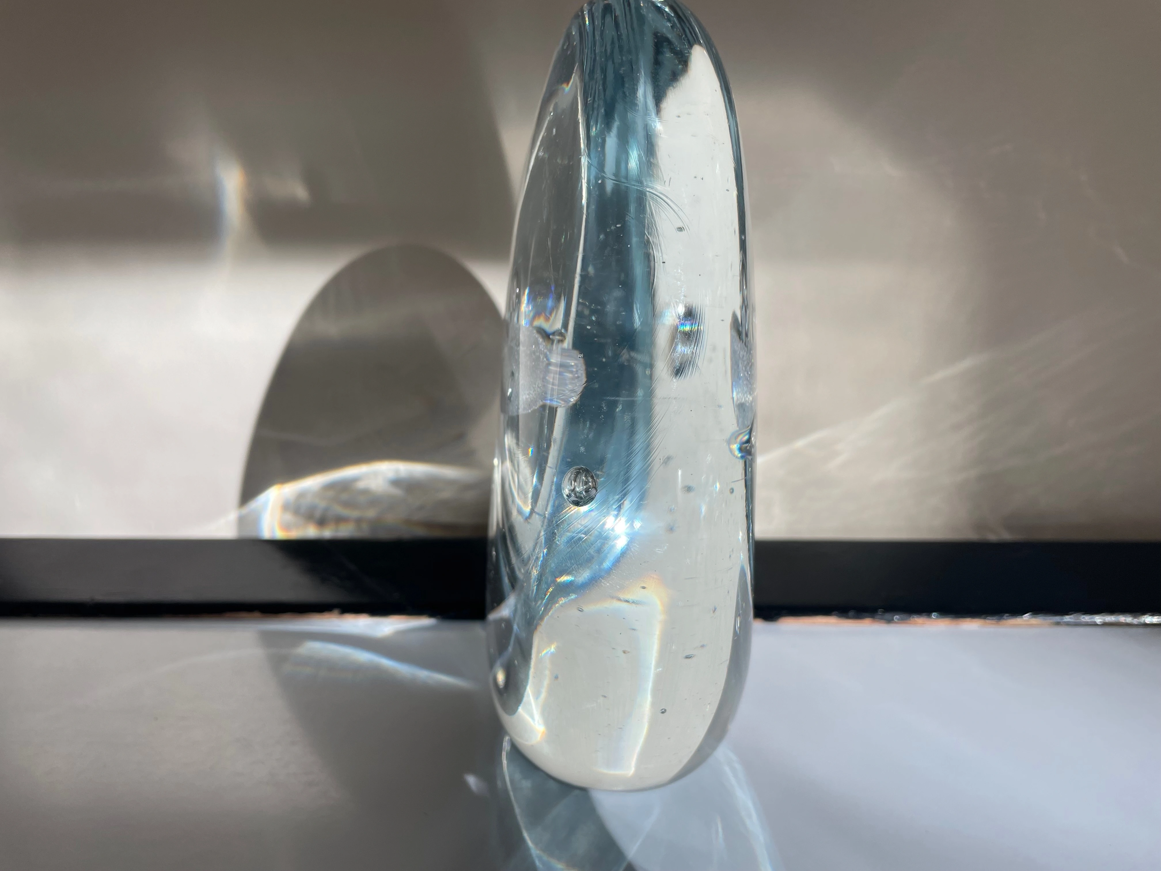 Crafted with care and precision, this vintage sculpture is a rare find in excellent condition, making it the perfect addition to any art collection. The sheer weight of the glass adds to its grandeur, making it a heavy weight glass sculpture at its best.