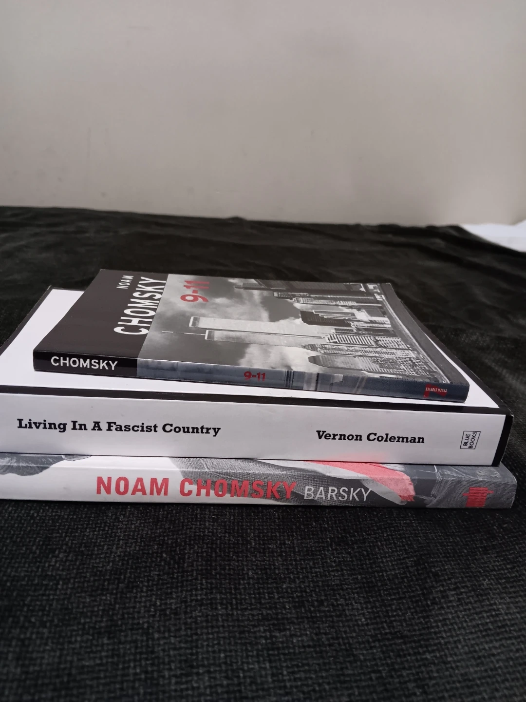 Three books are included: 'A Life of Dissent' by Robert F. Barsky, 'Living In A Fascist Country' by Vernon Coleman, and '9-11' by Noam Chomsky. These books cover various topics and authors.