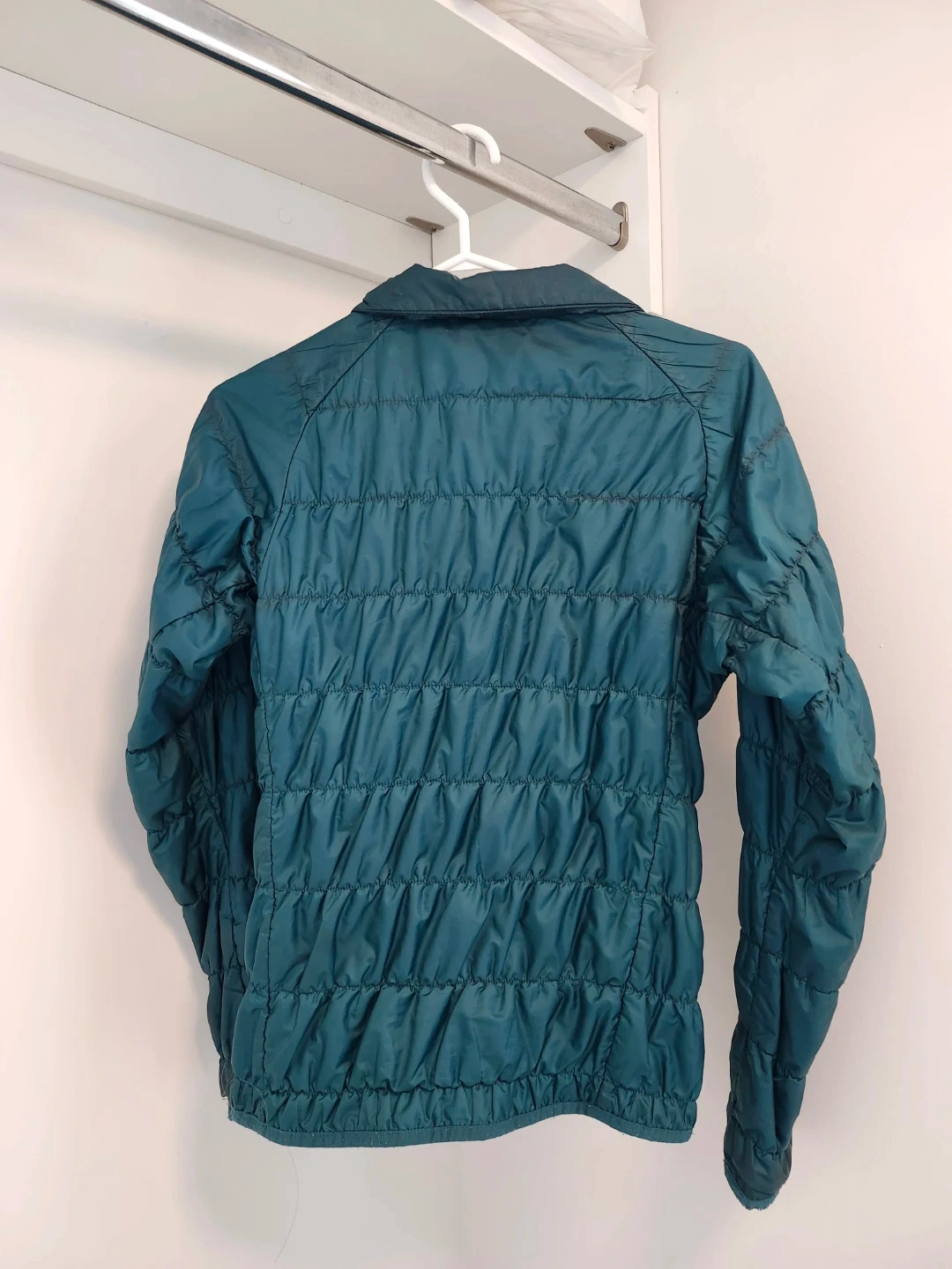 Lightweight, warm, and water-resistant. Perfect condition, no defects. Great for spring and fall weather, hikes and walks, travel, etc. Flattering fit with sideways stretch. One zippered pocket.