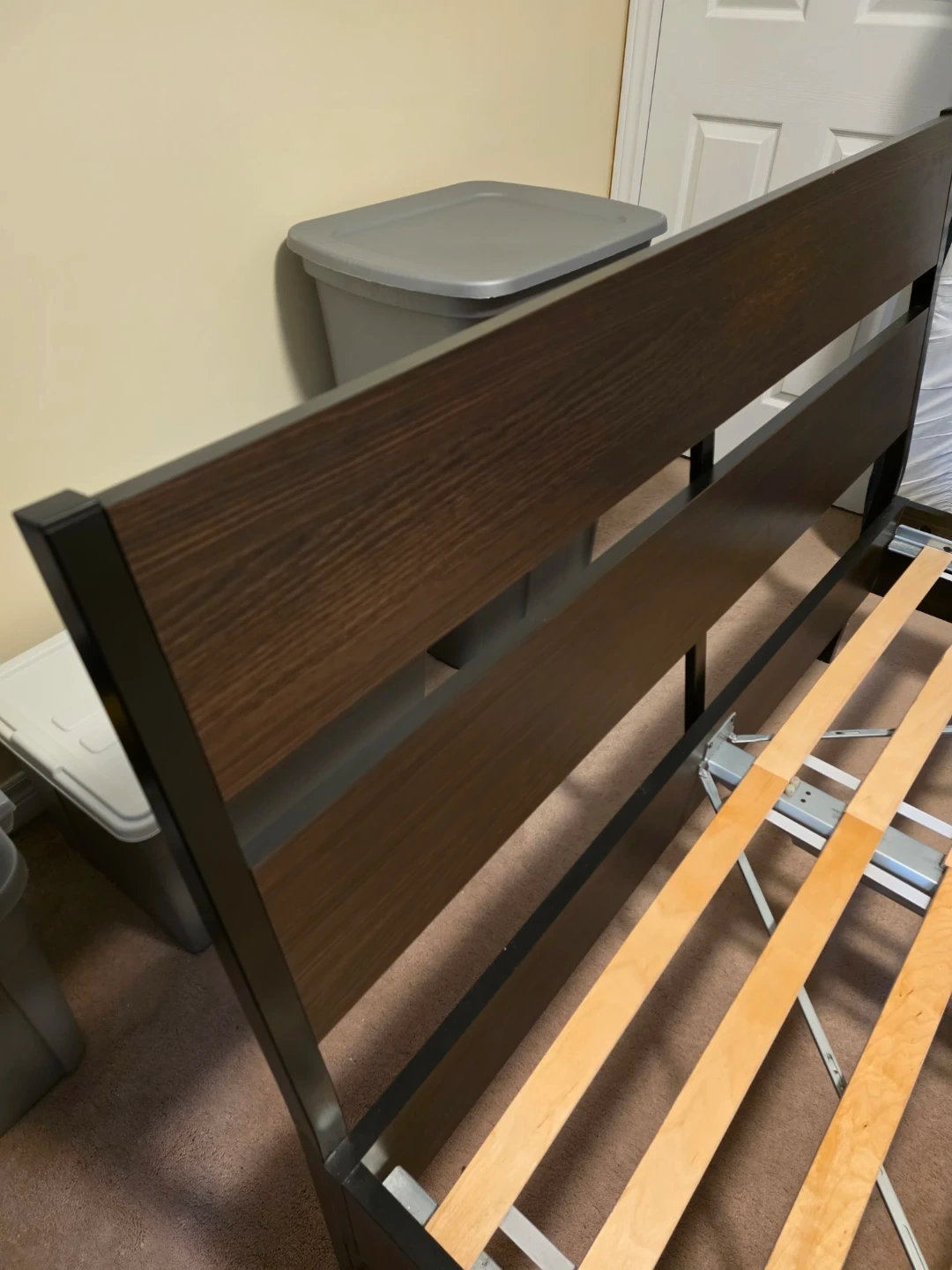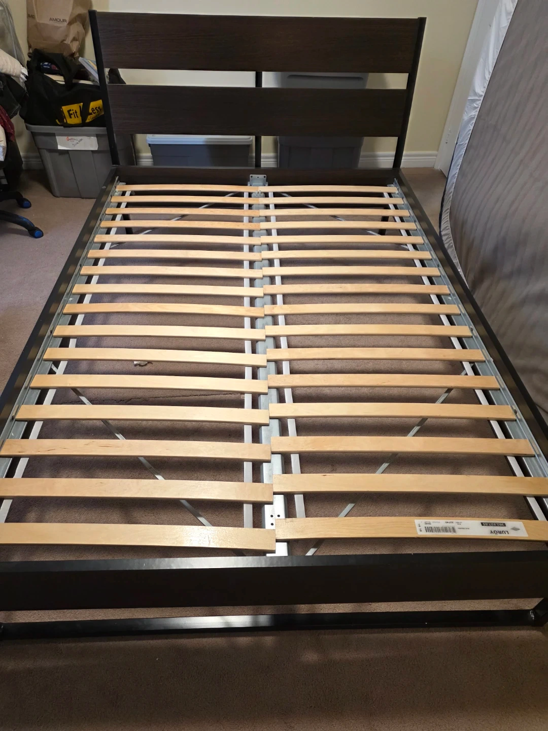 Selling my IKEA Trysil full/double bed frame, good condition, used for a couple of years in the guest room. Includes slats and center support beam, mattress not included. Has been dismantled so it's easy to take.