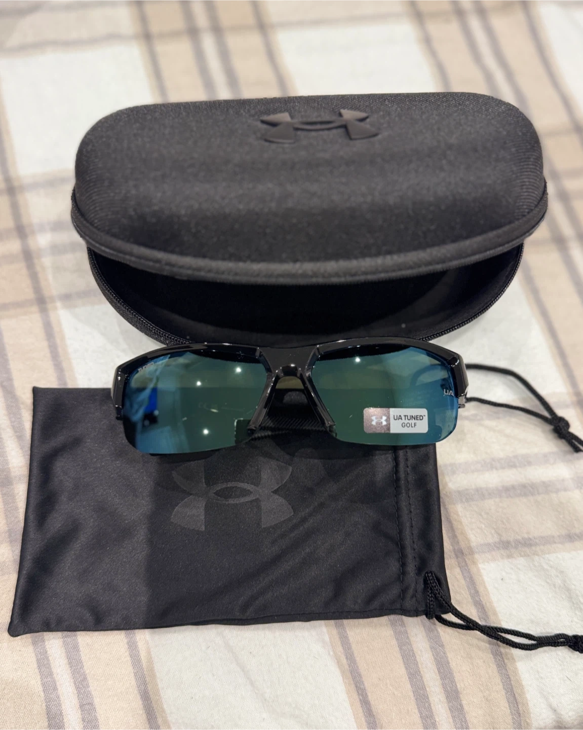 These Under Armour sunglasses are designed for golf with UA Tuned lenses. They come with a protective case and cleaning bag. Ideal for sunny days on the course!
