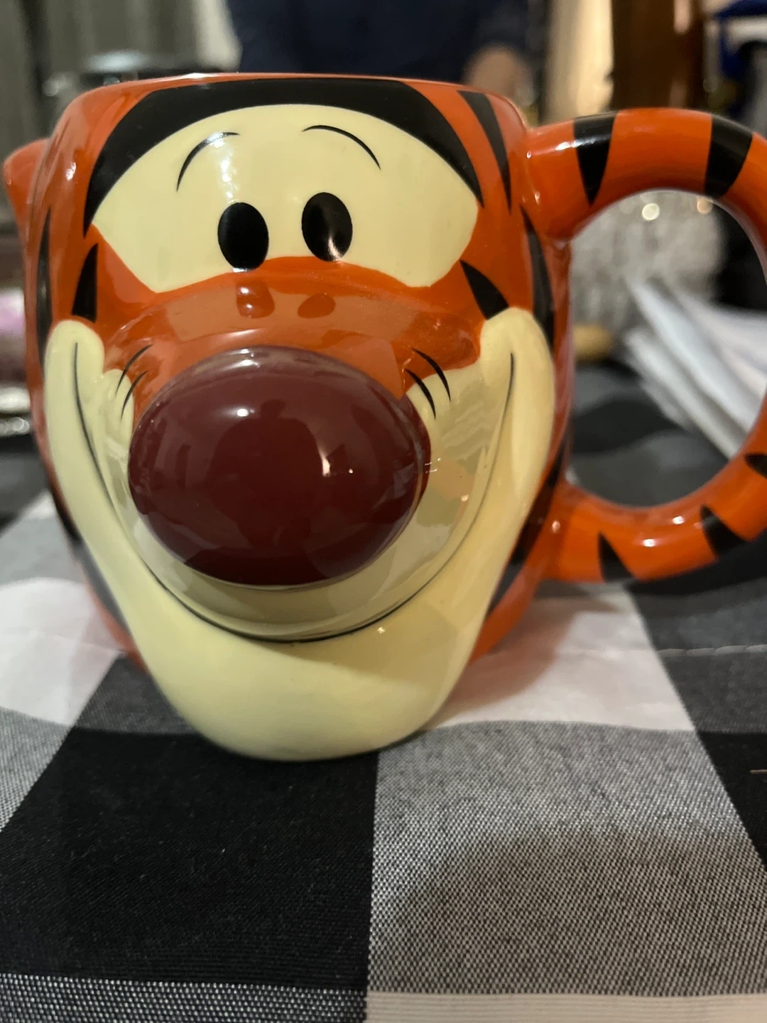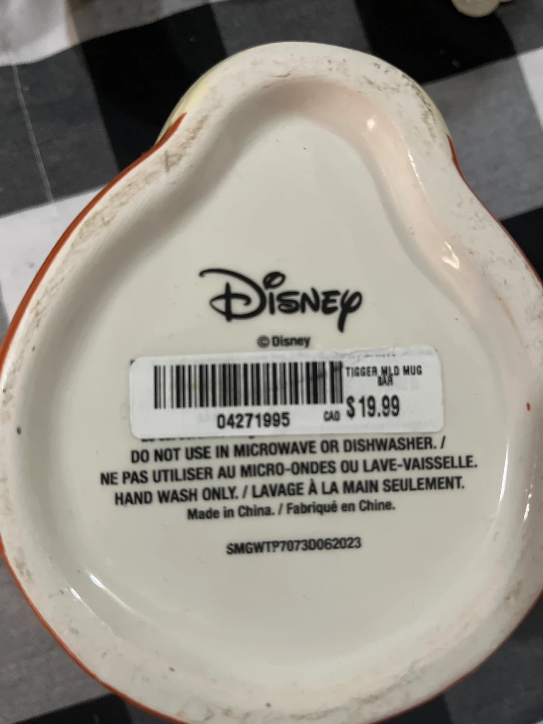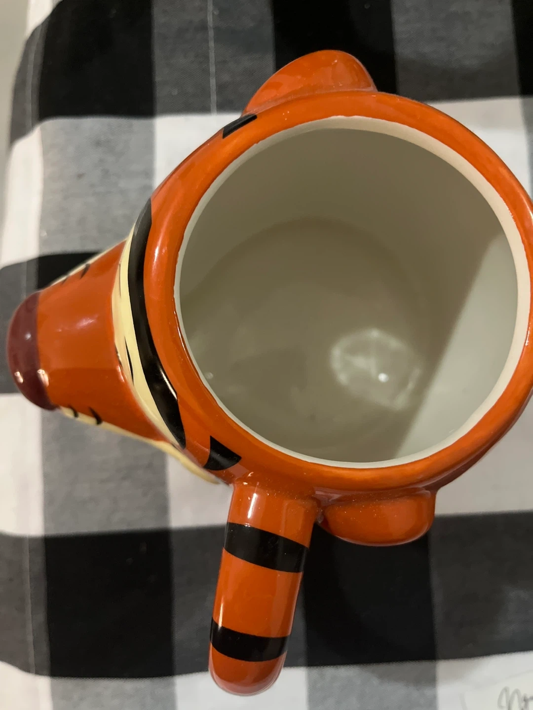 Ceramic mug featuring Tigger from Winnie the Pooh. It's dishwasher and microwave unsafe. Hand wash only. Made in China. New never used.