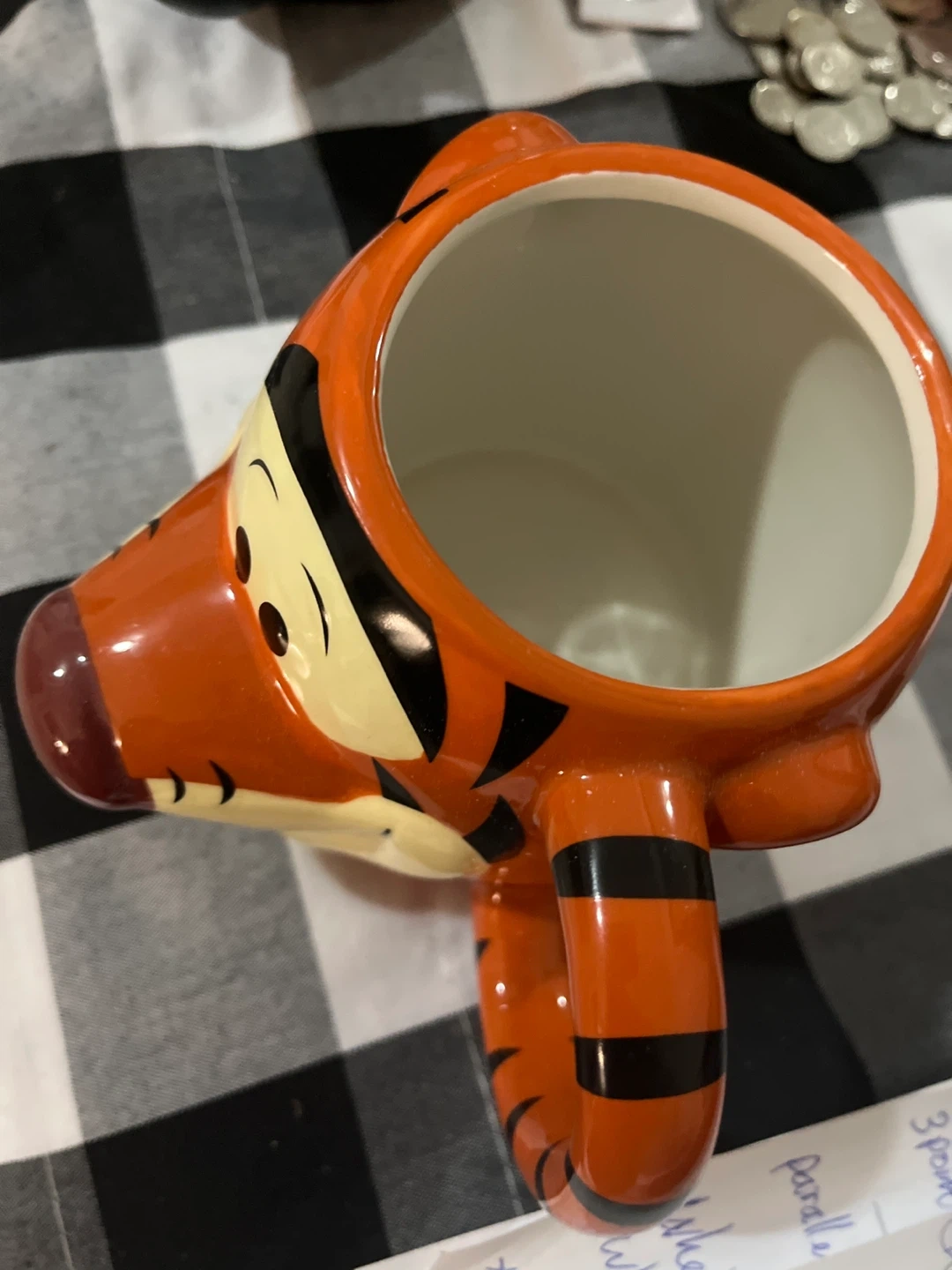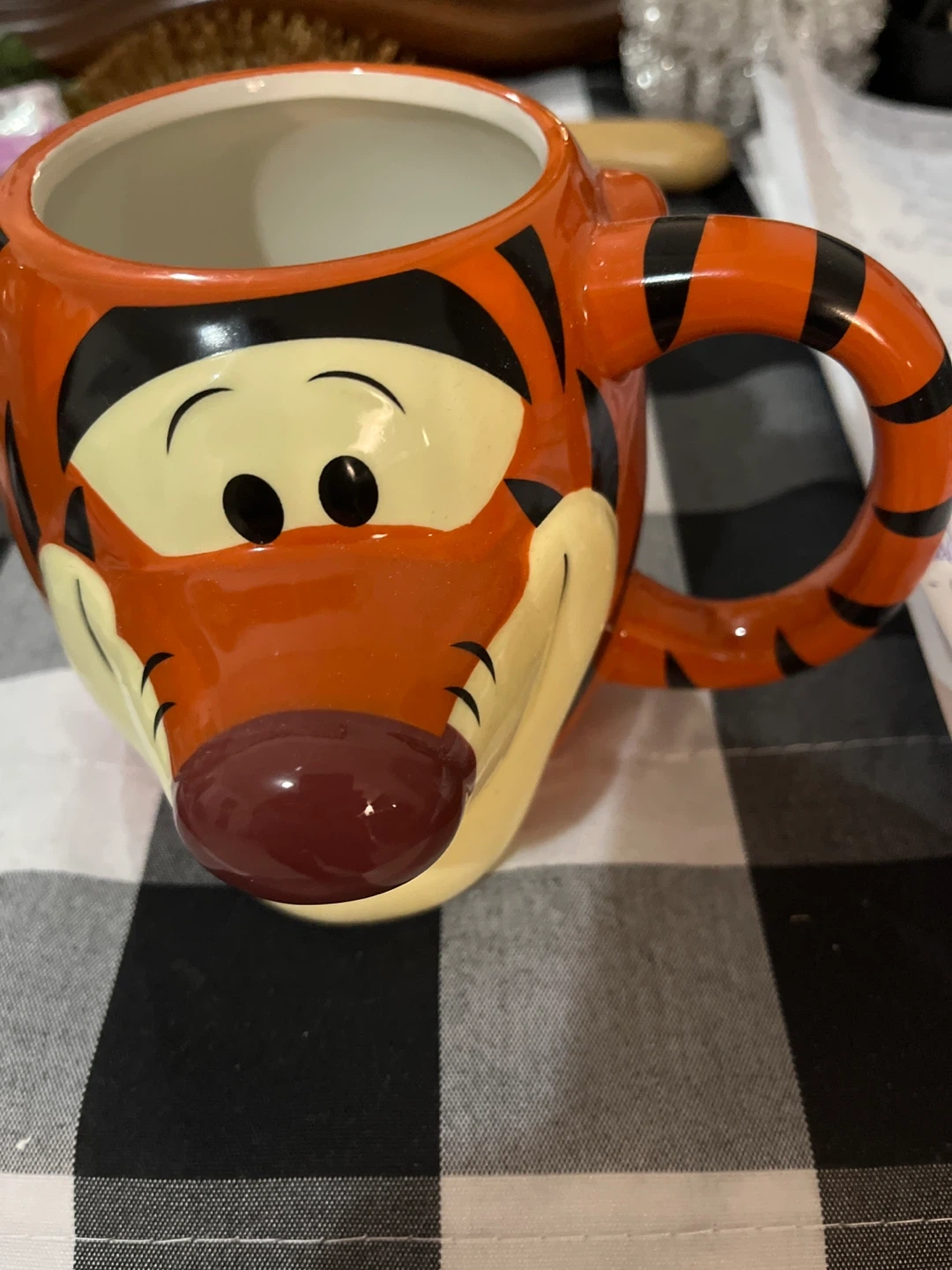 Ceramic mug featuring Tigger from Winnie the Pooh. It's dishwasher and microwave unsafe. Hand wash only. Made in China. New never used.