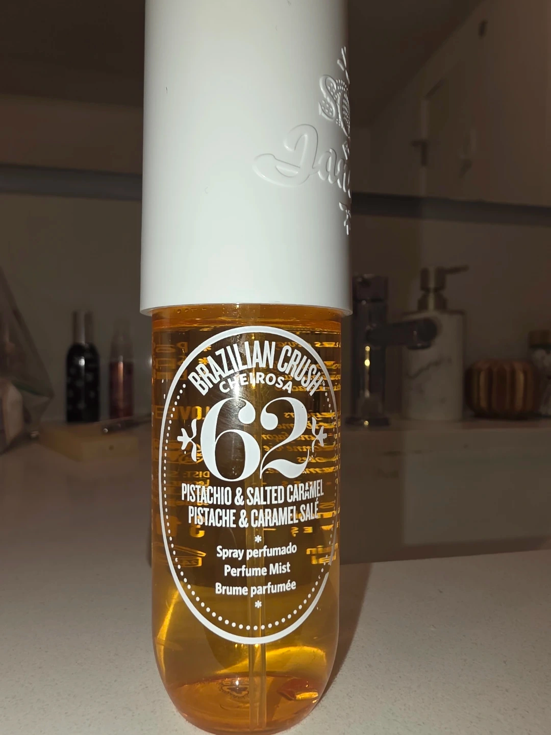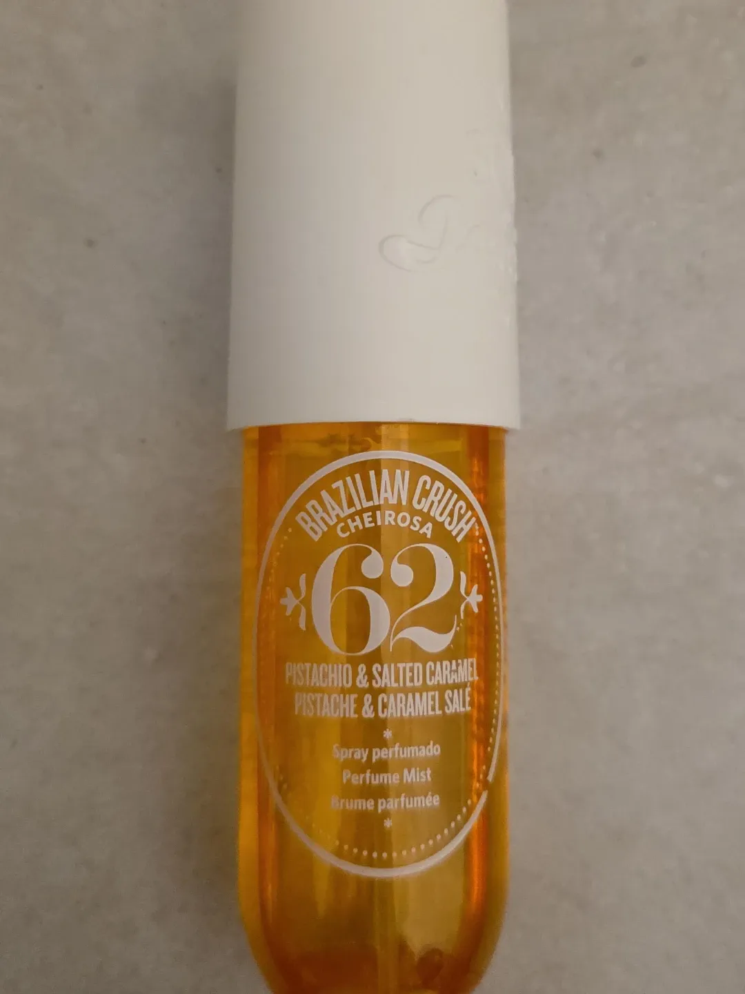 This is the Sol de Janeiro Brazilian Crush 62 Cheirosa hair and body mist. It's a pistachio & salted caramel scent. Enjoy this spray perfumado for a delightful fragrance!